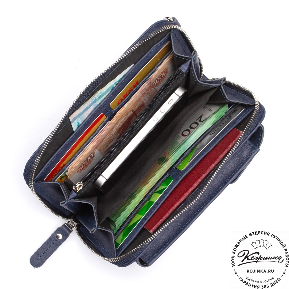 Кожаный клатч "Чукотка" (синий) – многофункциональная модель-трансформер!