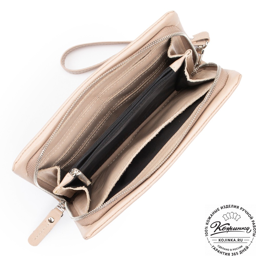 Клатч изготовлен из высококачественной натуральной кожи и прочной фурнитуры.