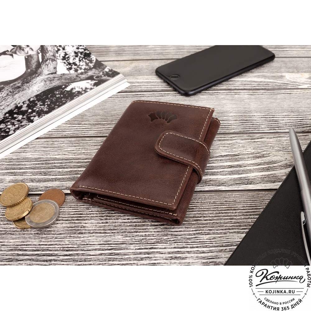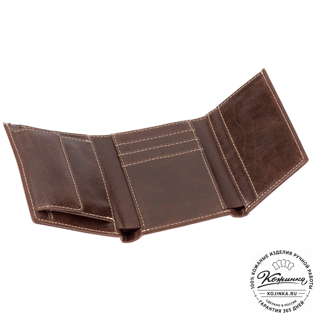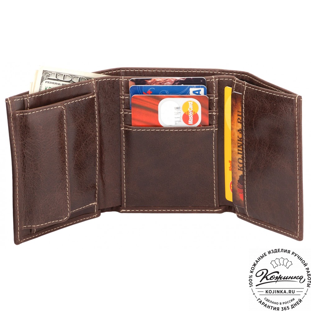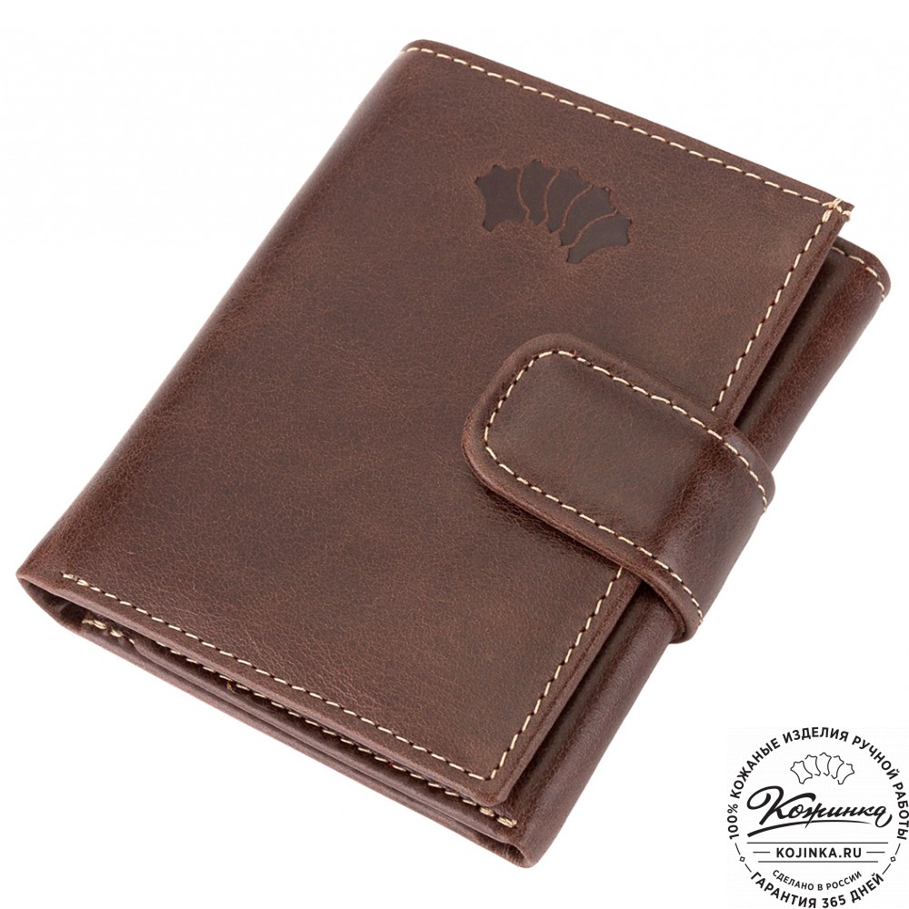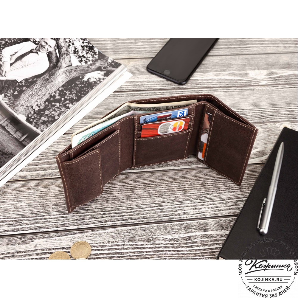 Кожаное портмоне "Германия" (коричневое) - отличный вариант небольшого бумажника с отделениями для карт, купюр и мелочи.