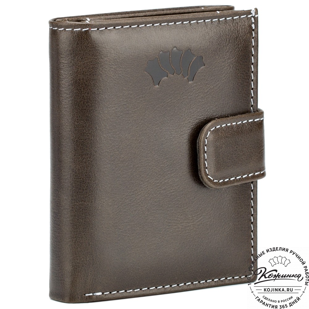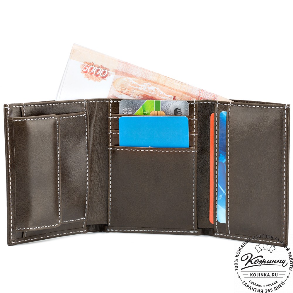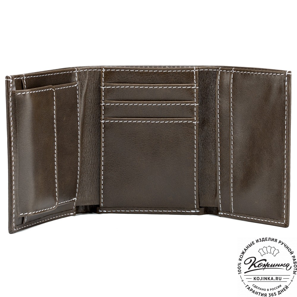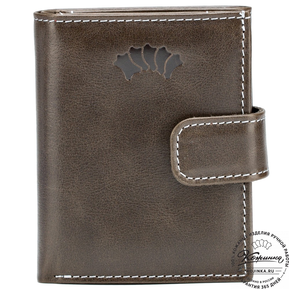 Кожаное портмоне "Германия" (оливковое) - отличный вариант небольшого бумажника с отделениями для карт, купюр и мелочи.