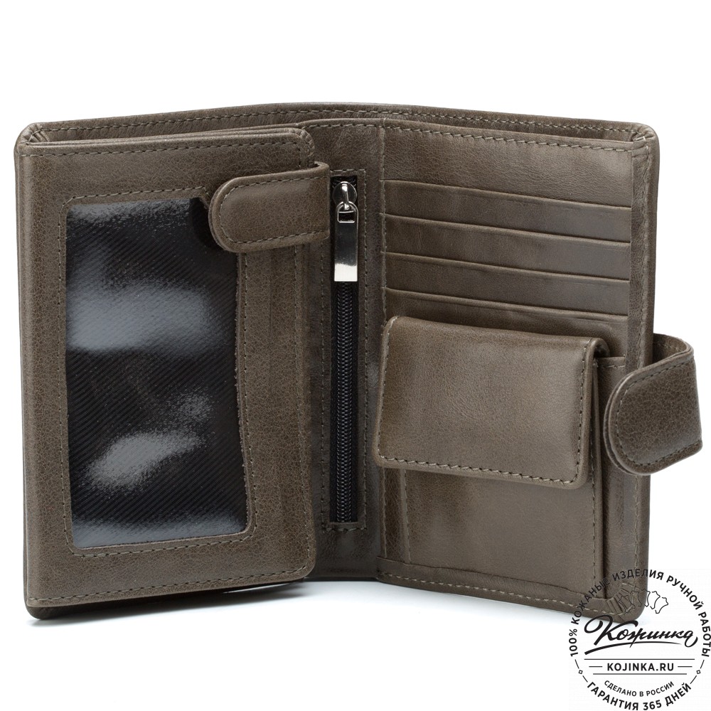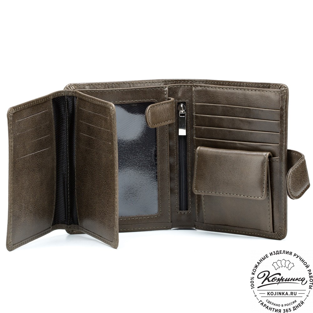 Кожаное портмоне "Пушкин" (оливковое) - вместительное стильное портмоне из мягкой качественной кожи.