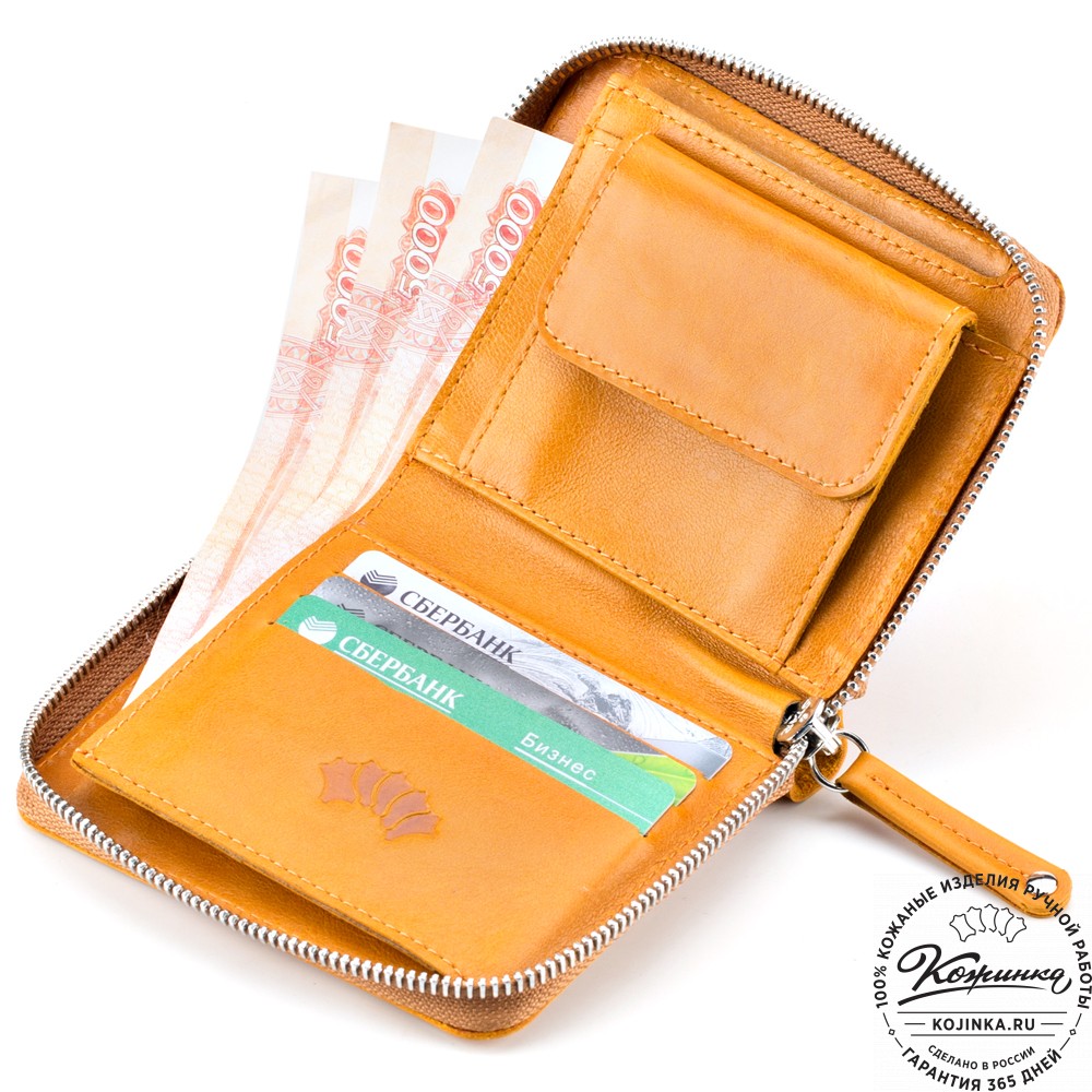 Кожаное портмоне "Швеция" (жёлтое) – удобное портмоне компактных размеров.