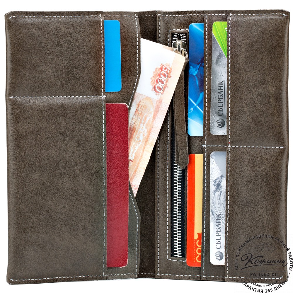 Портмоне вместит в себя много наличных денег, монеты в специальном отделении на молнии, пластиковые карты и даже чеки от покупок в магазинах. Все отделения с подкладом, аккуратно прострочены.