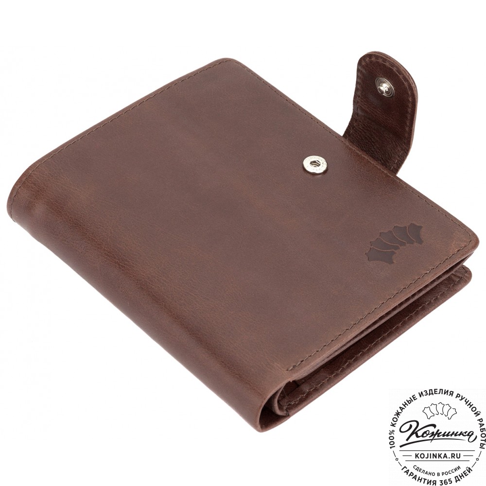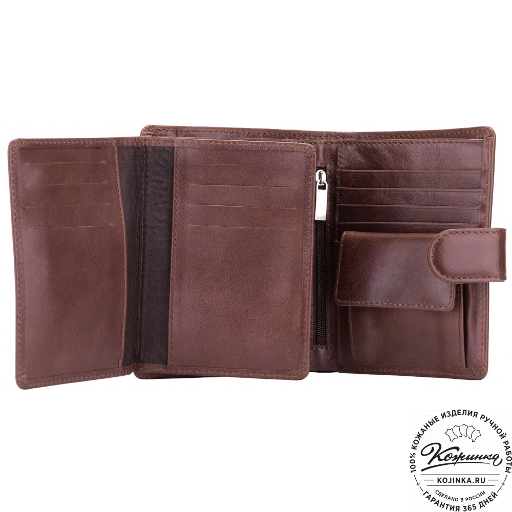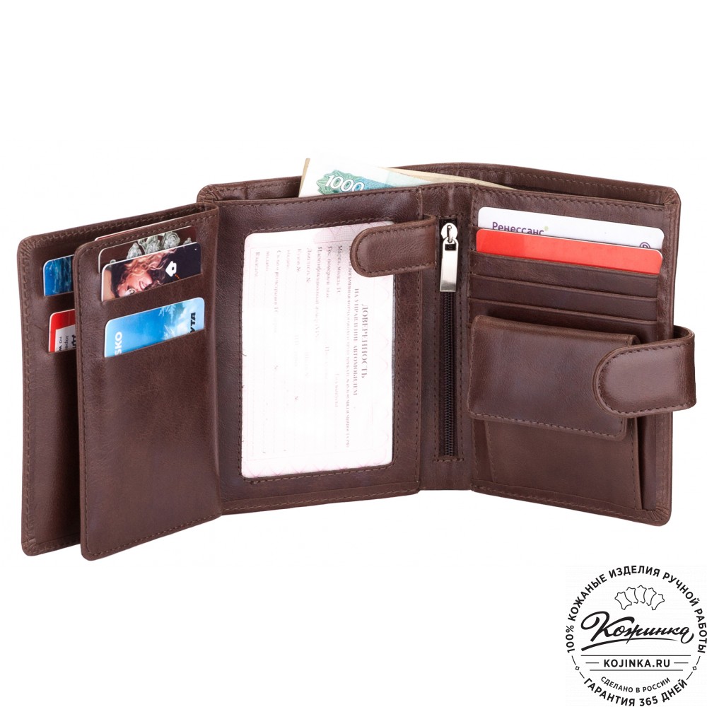 Кожаное портмоне "Пушкин" (оливковое) - вместительное стильное портмоне из мягкой качественной кожи.
