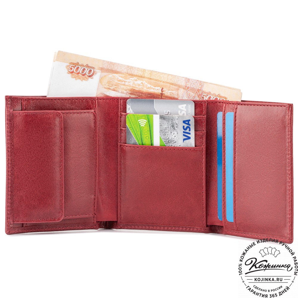 Кожаное портмоне "Германия" (оливковое) - отличный вариант небольшого бумажника с отделениями для карт, купюр и мелочи.