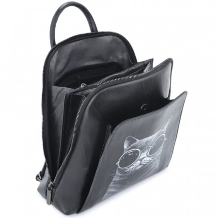 Кожаное портмоне "Ведьма и кот" (чёрное) - красивое портмоне с уникальной ручной росписью.