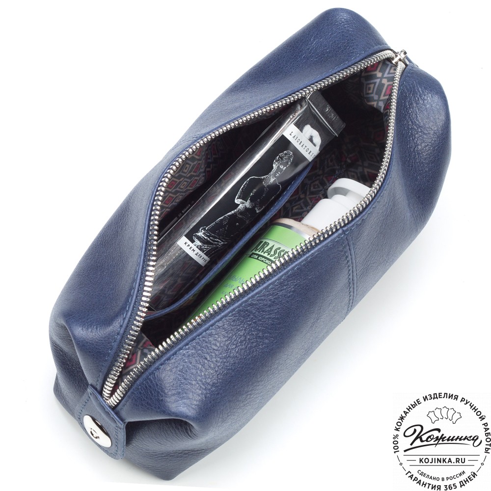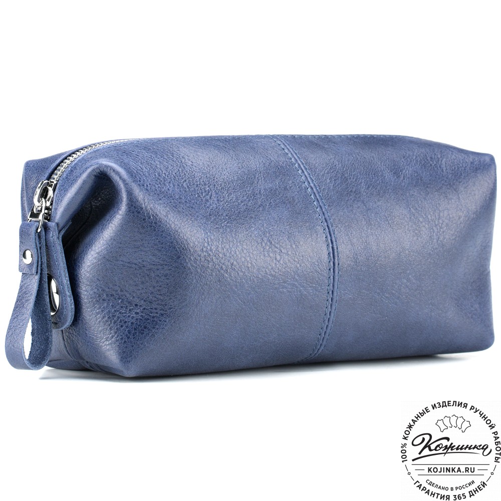 Кожаная косметичка "Бамбина" (синяя) – вместительная косметичка из мягкой натуральной кожи, которую так приятно держать в руках!