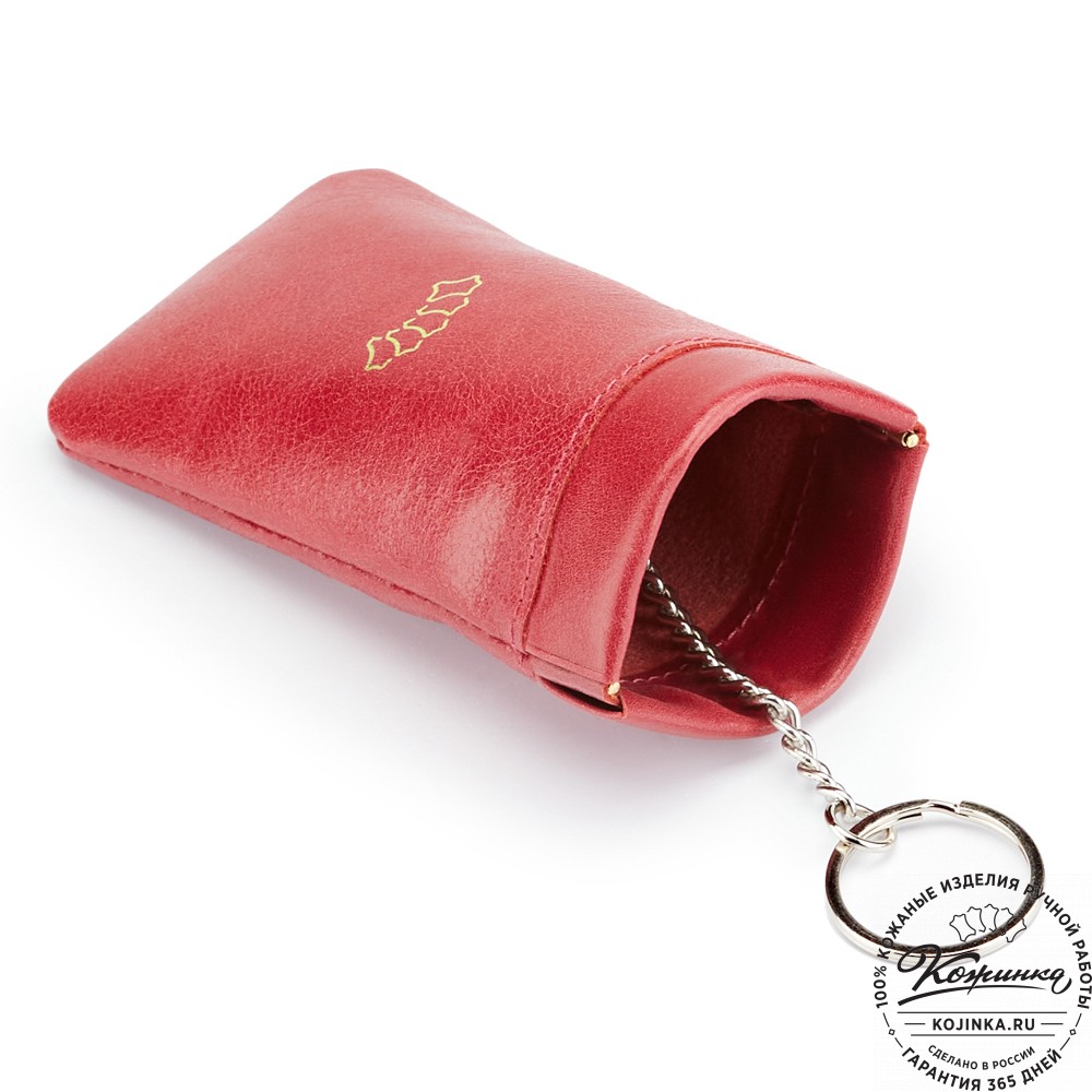 Эта модель представляет собой открытый кожаный чехол с металлическим кольцом на цепочке внутри.
