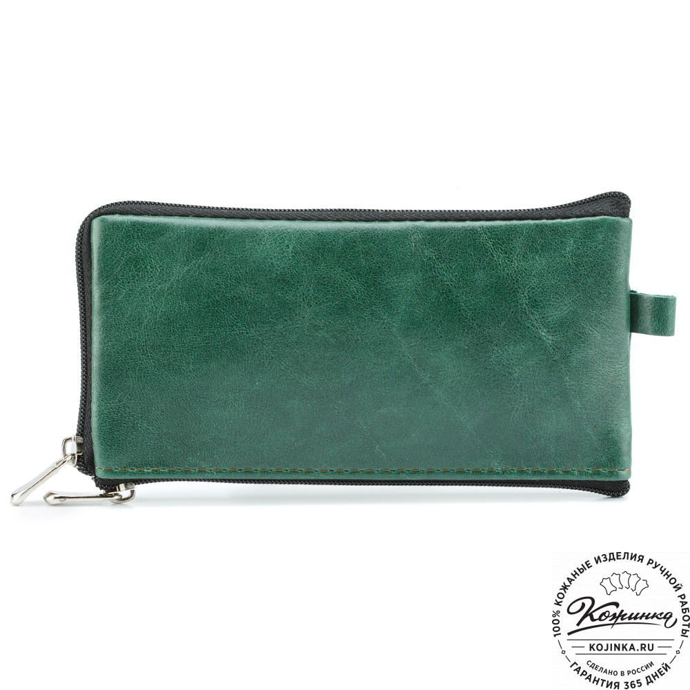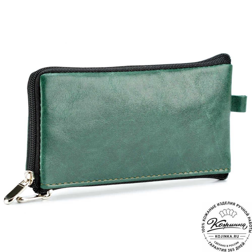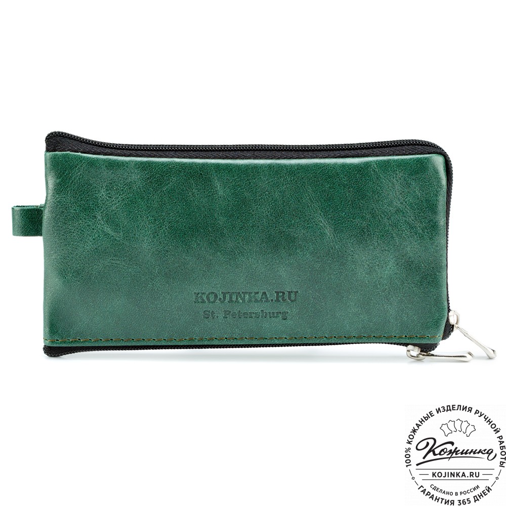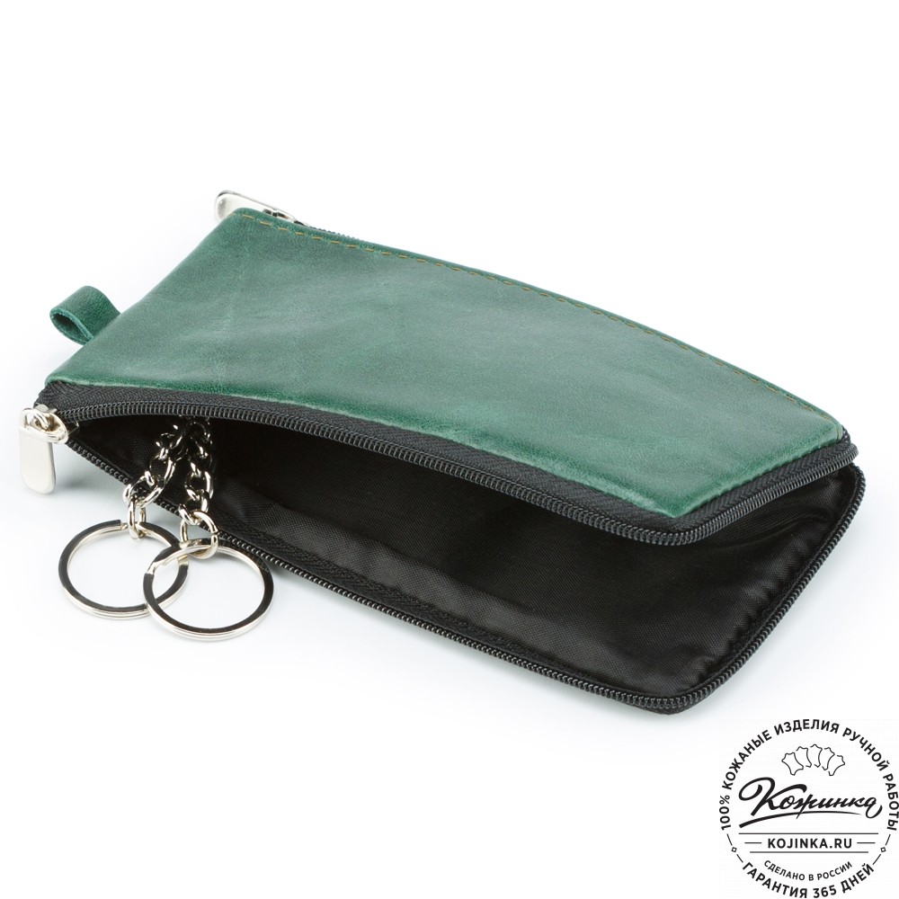 Кожаная ключница "Шанхай" (зелёная) – большая удобная ключница с дополнительным кармашком на молнии.