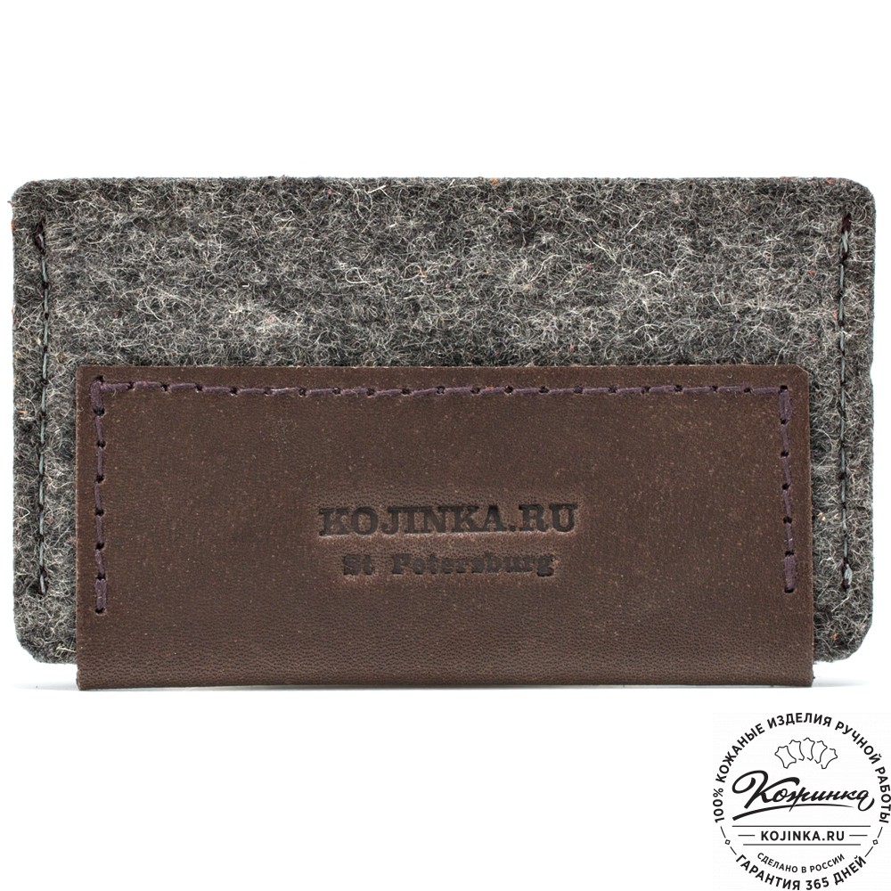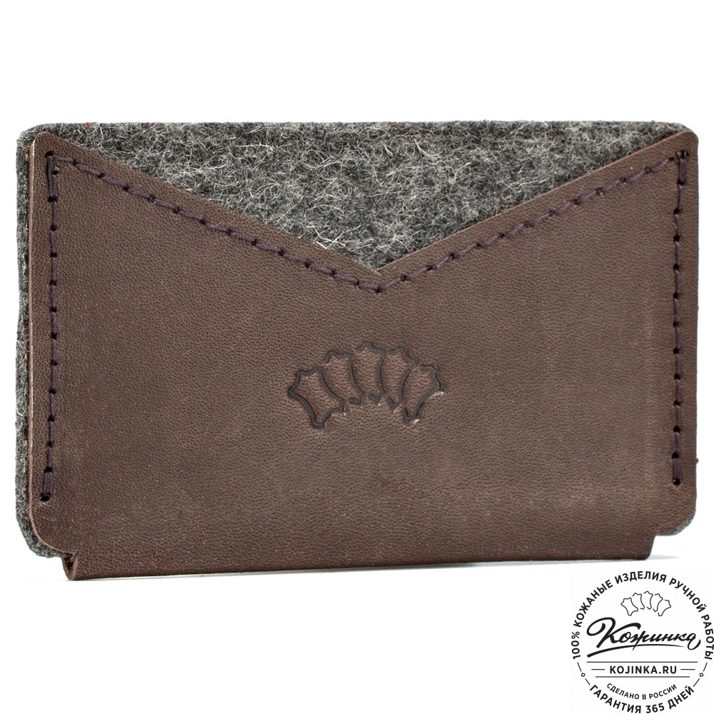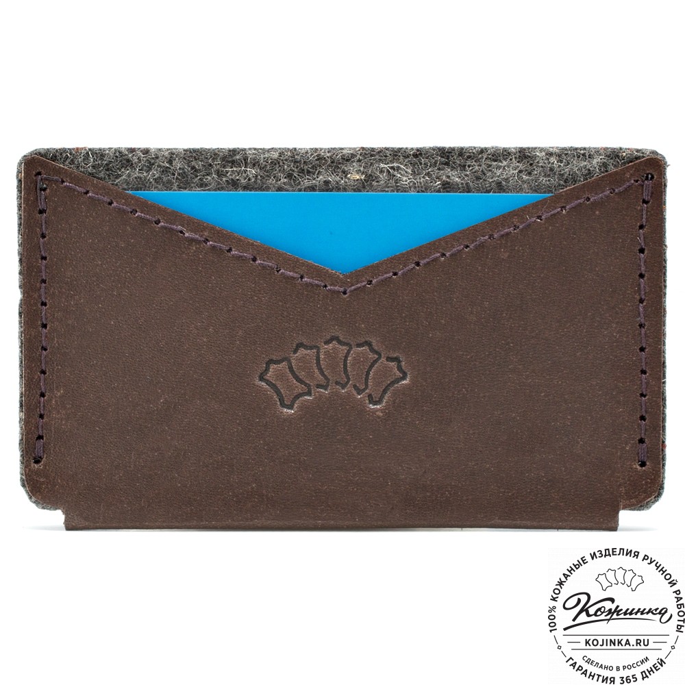 Держатель для пластиковых и банковских карт "Эрик" (коричневый) – компактный кардхолдер из натуральной кожи и войлока.