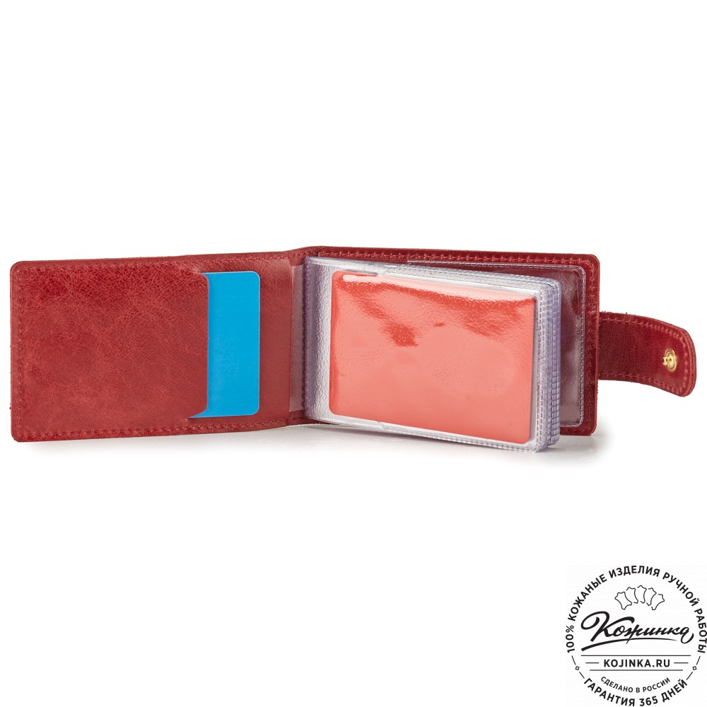 Кожаная визитница Одесса (красная) - и все скидочные карты на месте!