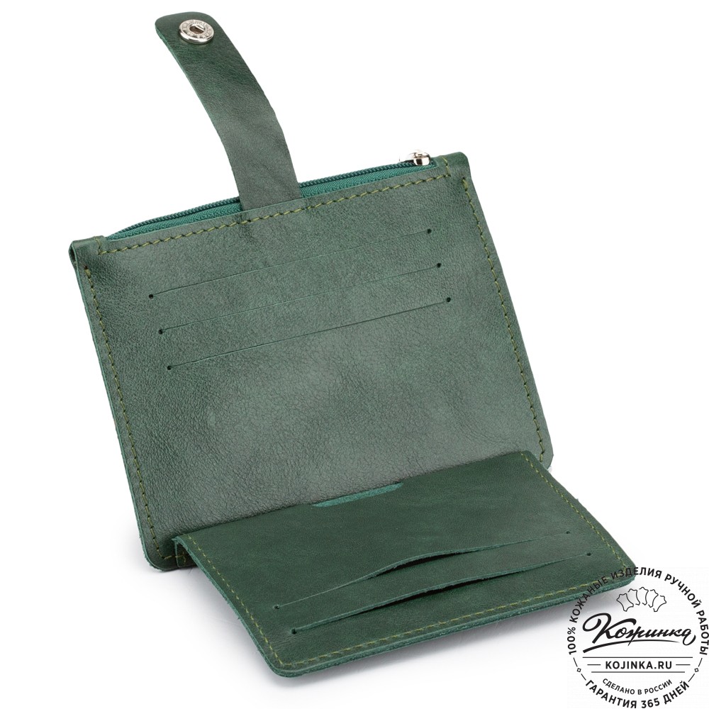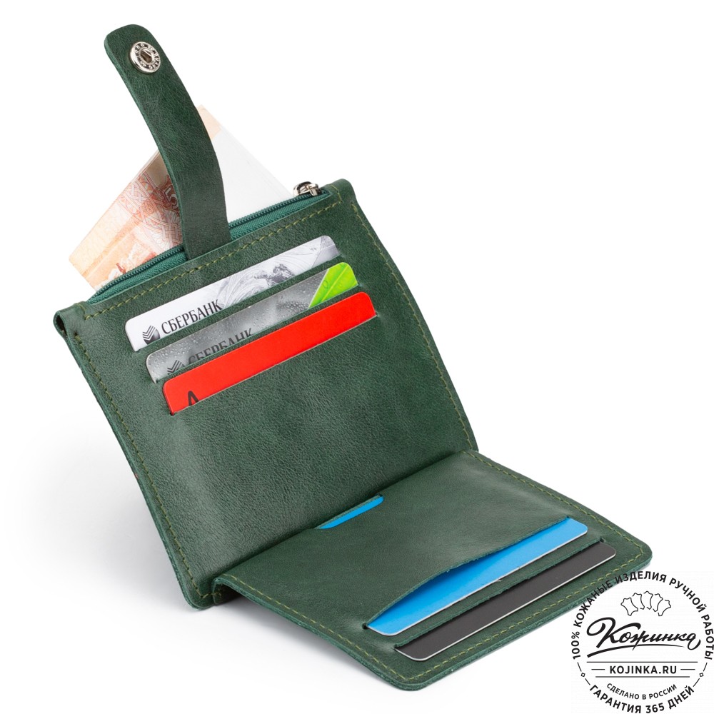 В этой модели 8 слотов для карт или визиток, кармашек на молнии и еще один дополнительный открытый карман!