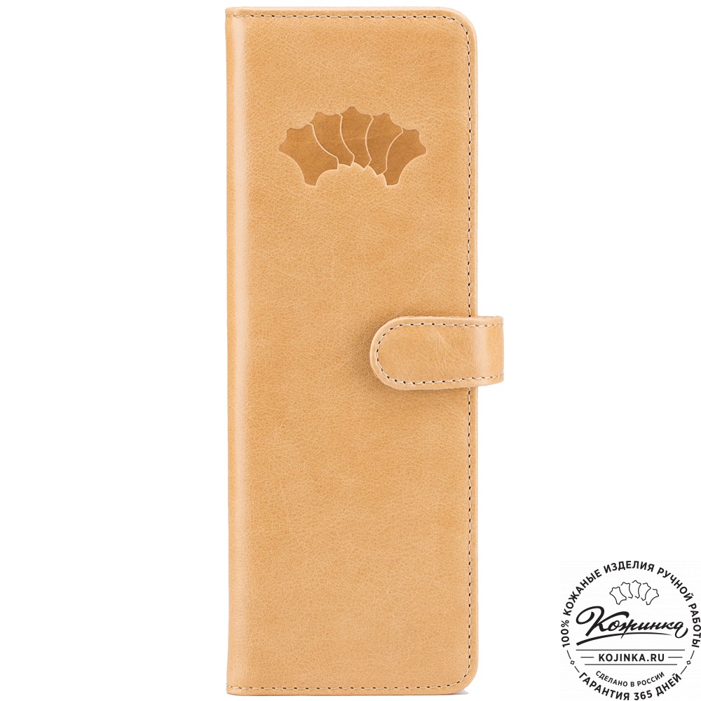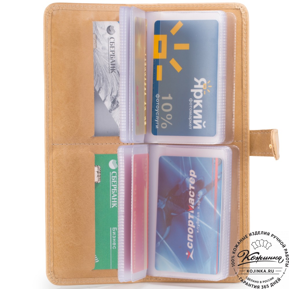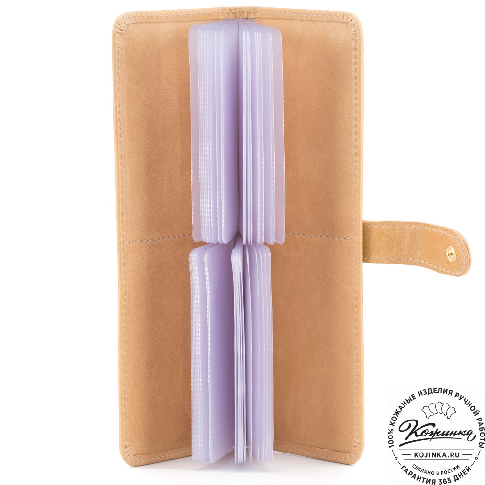 Кожаная визитница Токио (бежевая) - большая, вместительная визитница.