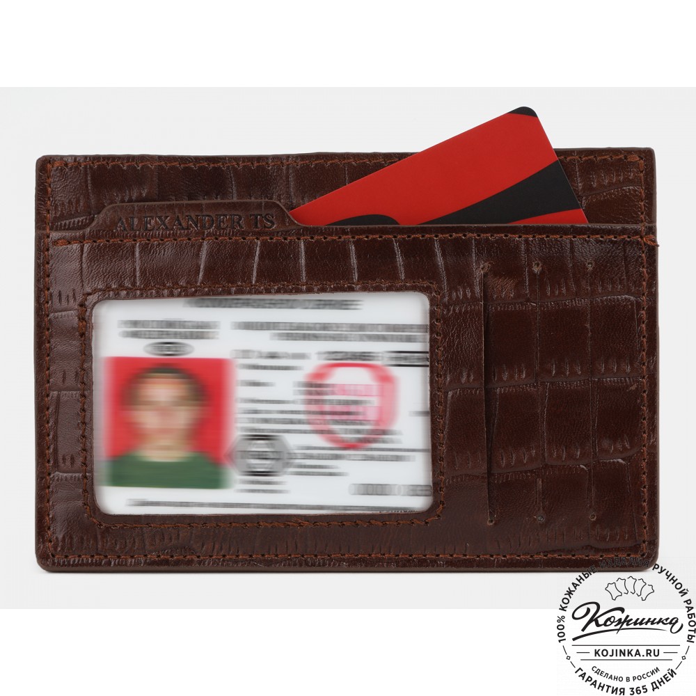 Кожаный картхолдер "Генуя" - удобный, компактный аксессуар с кармашками для карт, визиток и двумя отделениями с прозрачной стенкой.