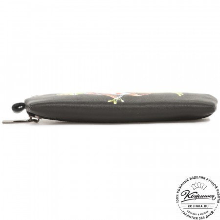 Кожаный хлястик с кнопкой дополнительно фиксирует карты.