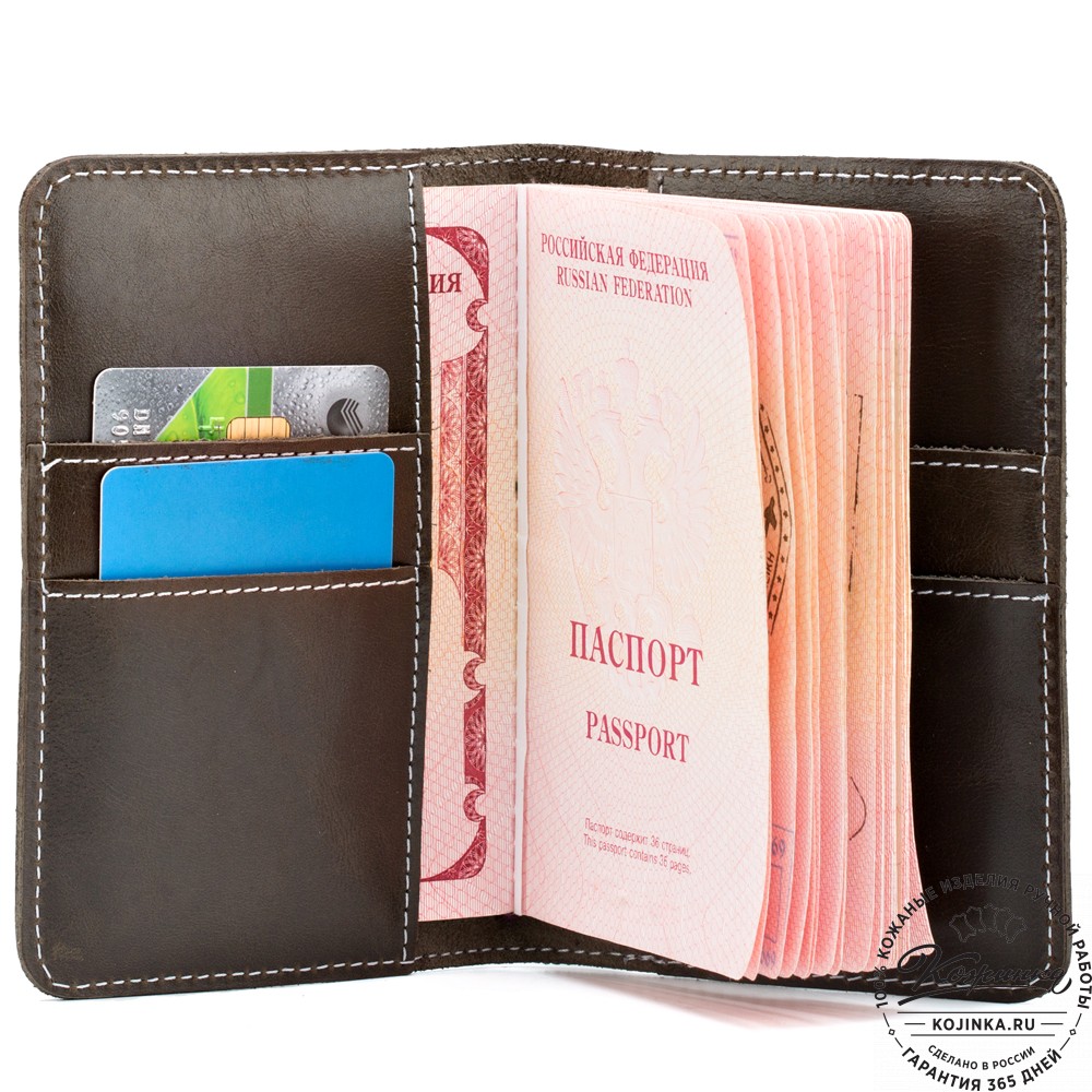 В такой кожаной обложке паспорт будет надежно храниться долгие годы. Внутрь вместе с паспортом можно положить пластиковые карты и визитки и не бояться, что они выпадут!
