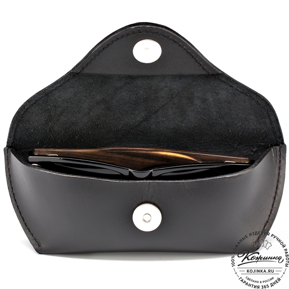 Кожаный футляр для очков (чёрный) – стильный аксессуар для истинных ценителей натуральной кожи.