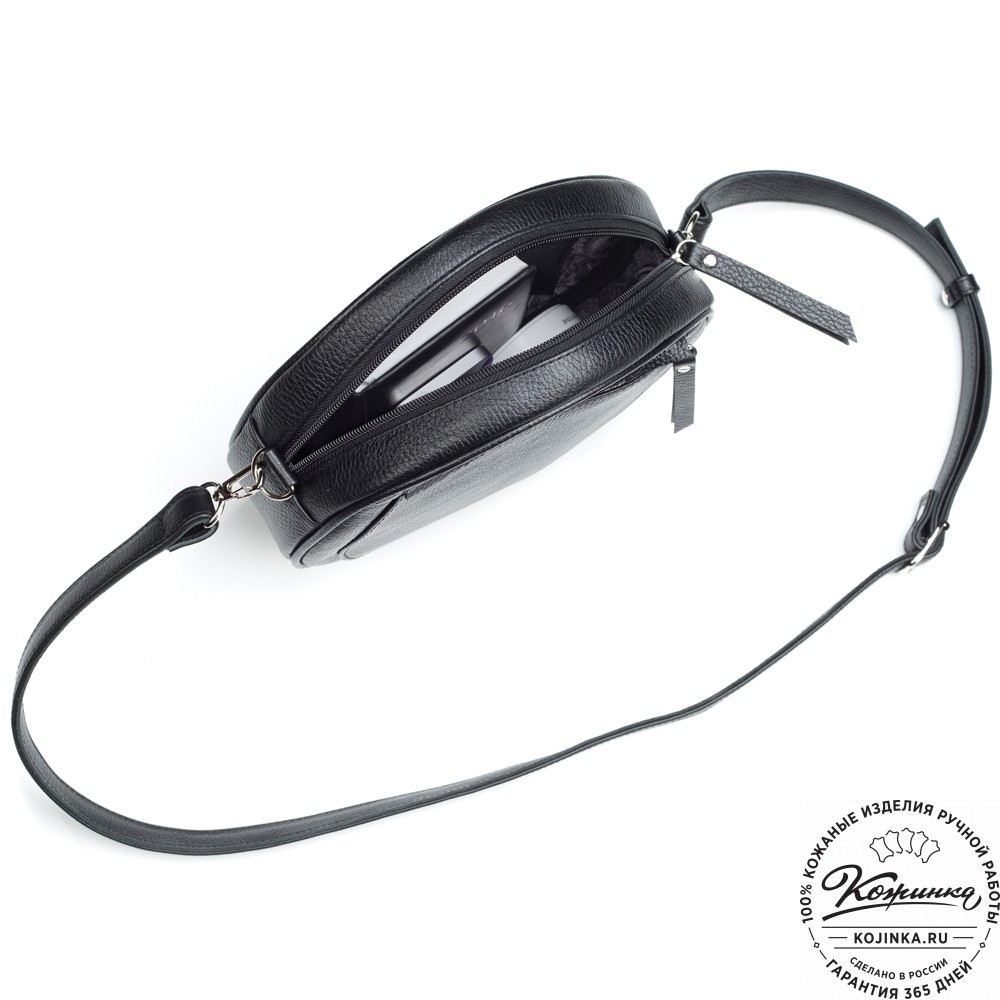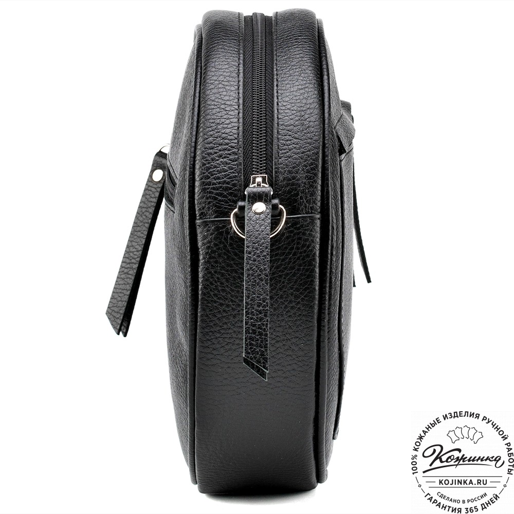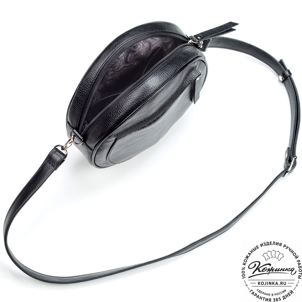 Женская кожаная сумка "Дарья" (чёрная) – небольшая круглая сумочка из натуральной кожи. Оригинальный аксессуар, который приятно разнообразит гардероб и отлично дополнит практически любой образ - сумочка будет хорошо смотреться и с романтическим платьем и с джинсами!