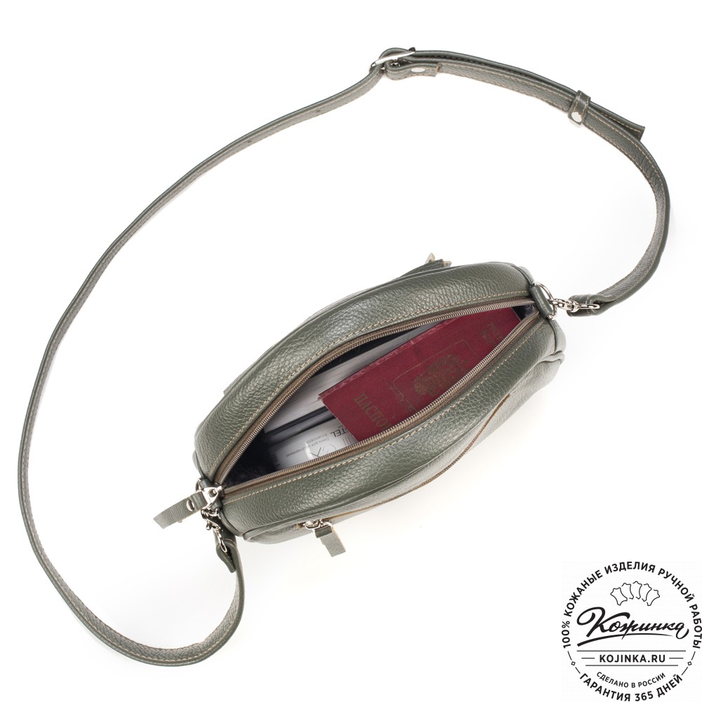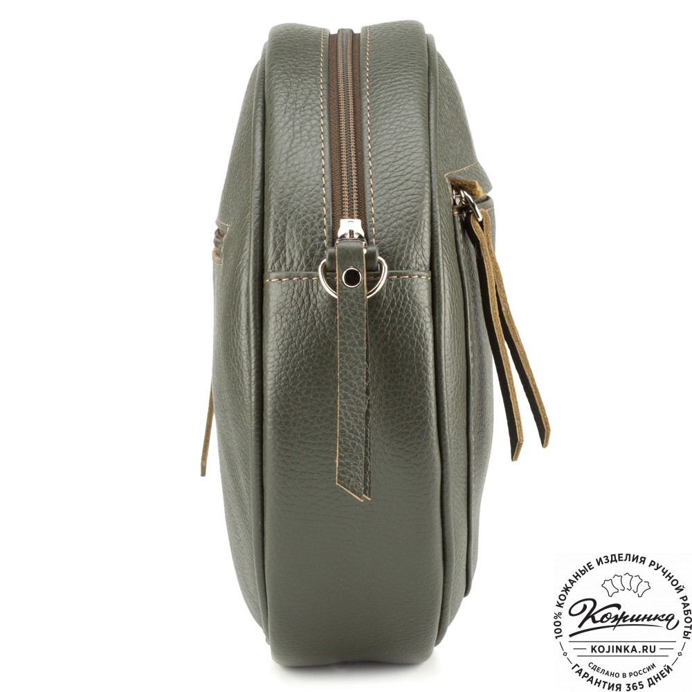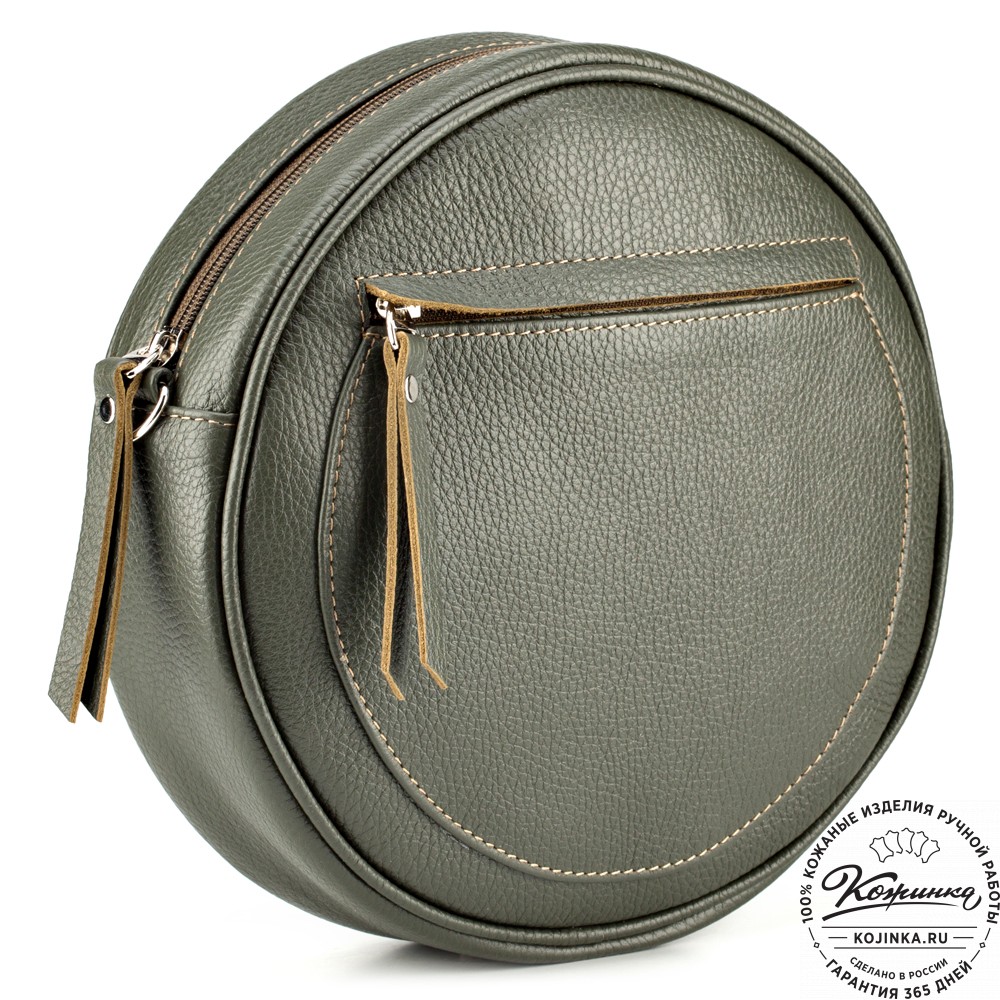 Женская кожаная сумка "Дарья" (оливковая) – небольшая круглая сумочка из натуральной кожи. Оригинальный аксессуар, который приятно разнообразит гардероб и отлично дополнит практически любой образ - сумочка будет хорошо смотреться и с романтическим платьем и с джинсами!