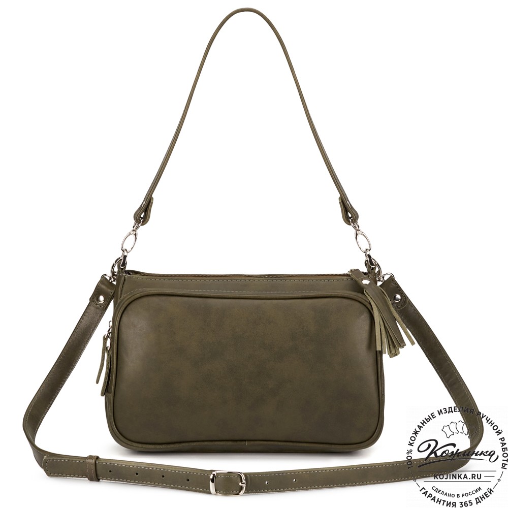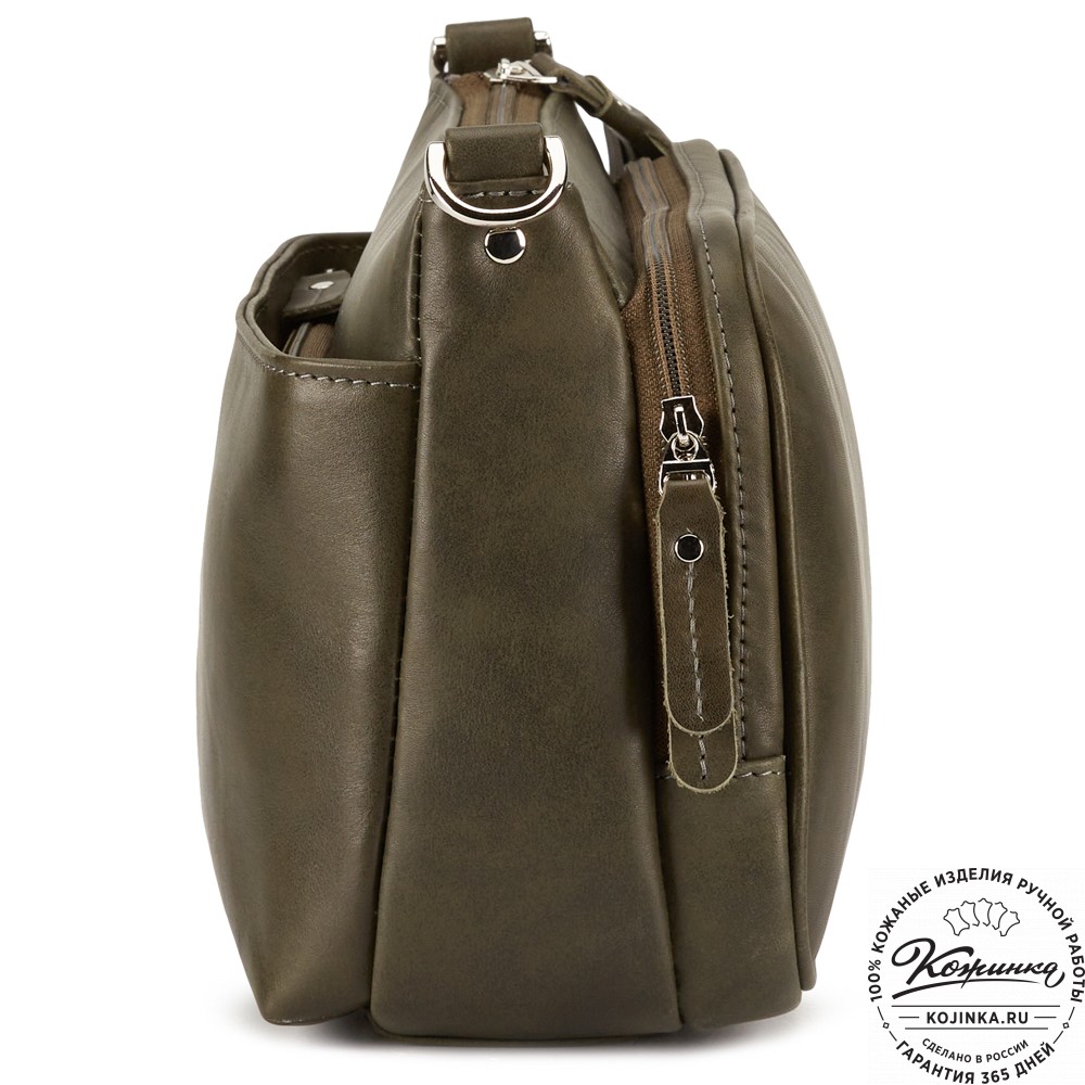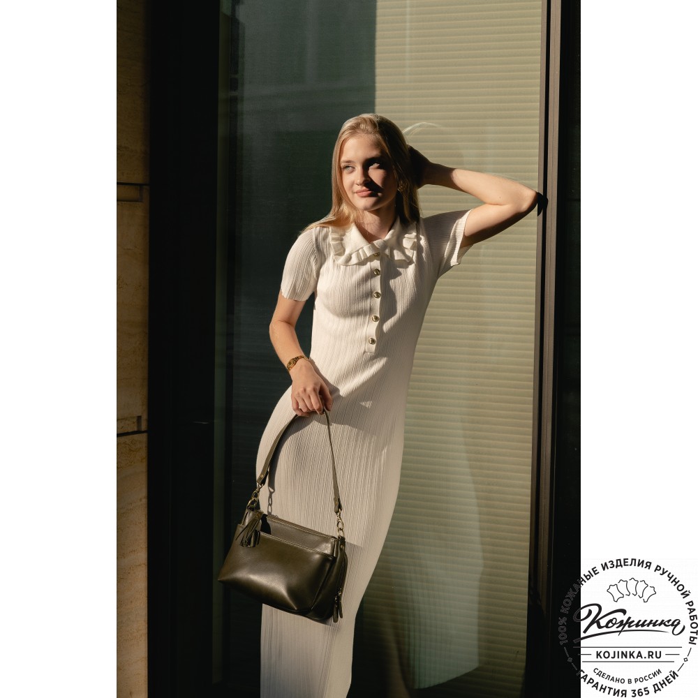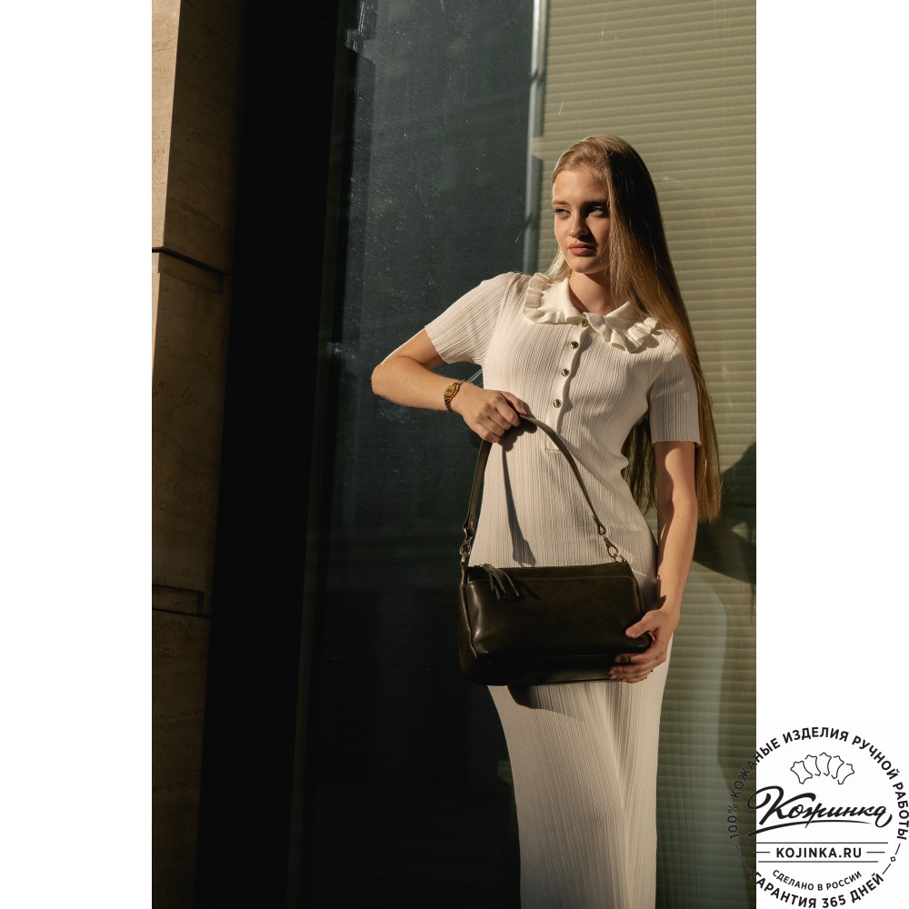 Женская кожаная сумка "Эмма" (хаки гладкая кожа) – удобная и практичная повседневная сумочка средних размеров.