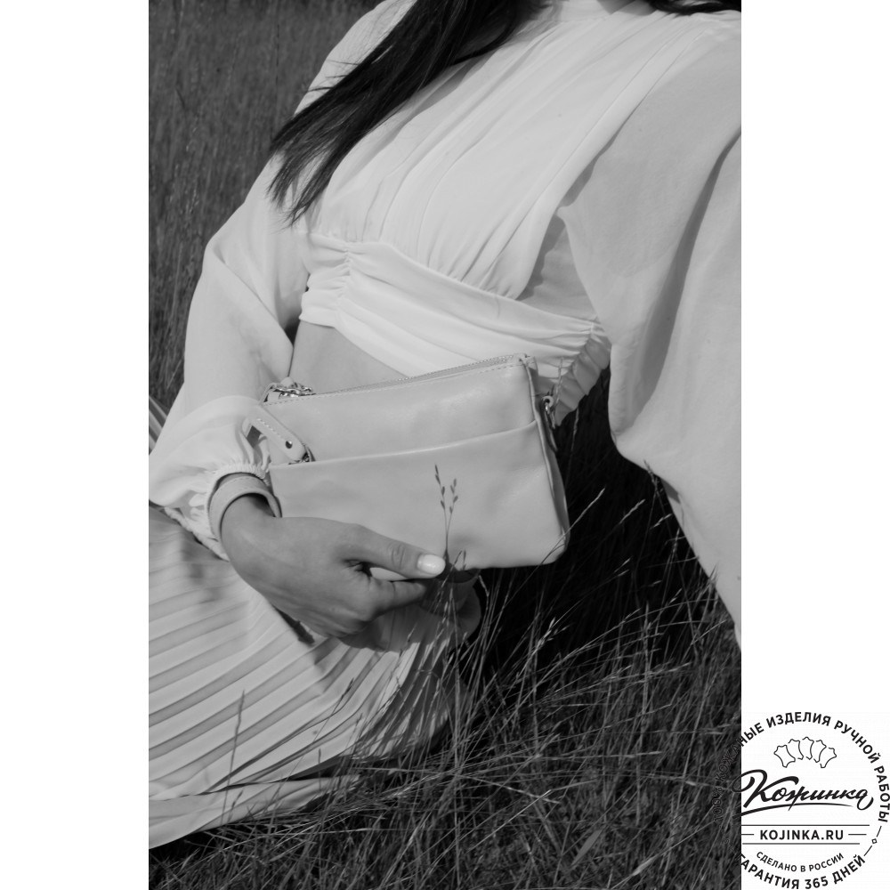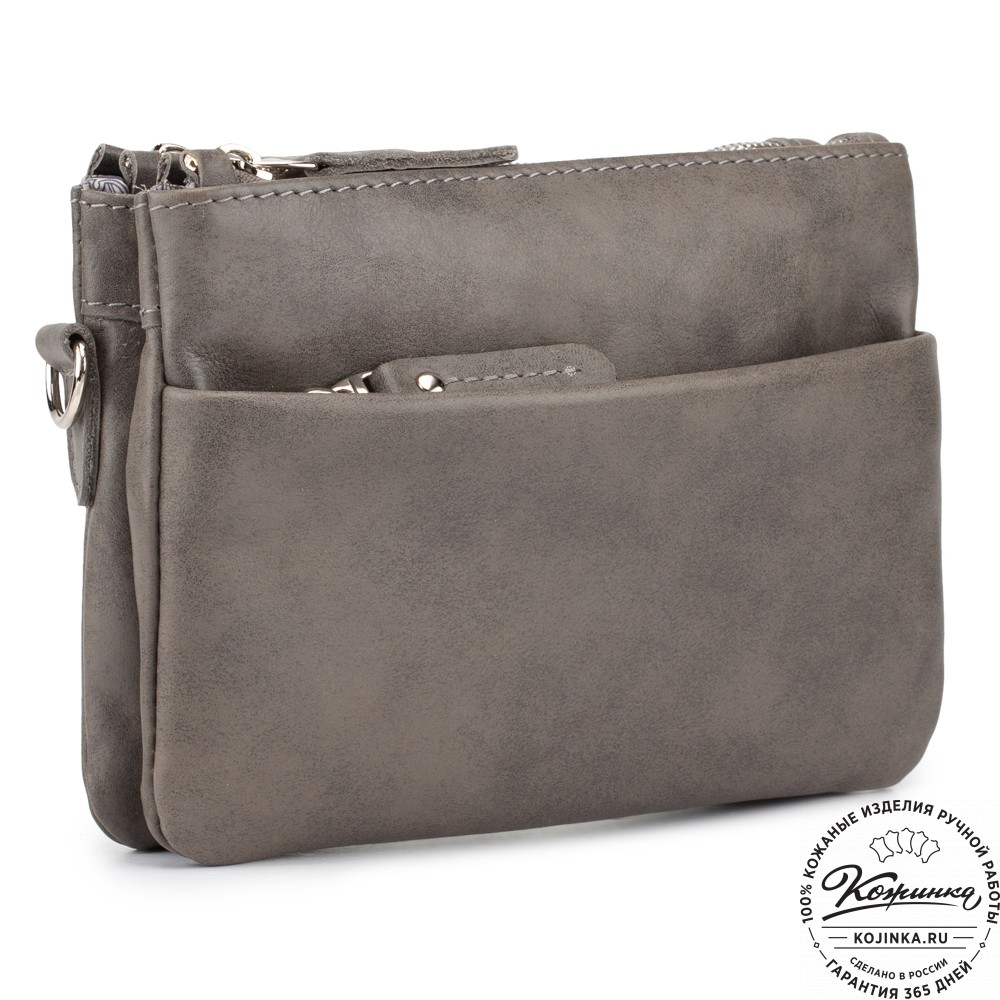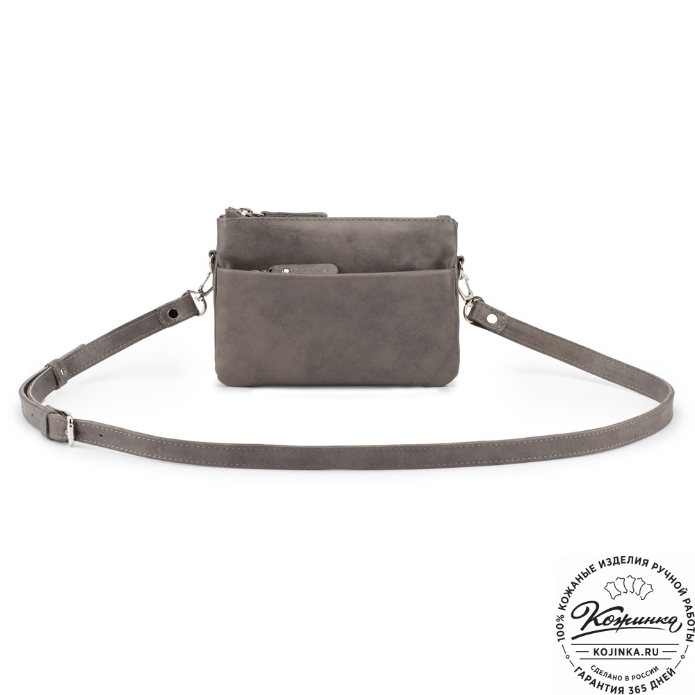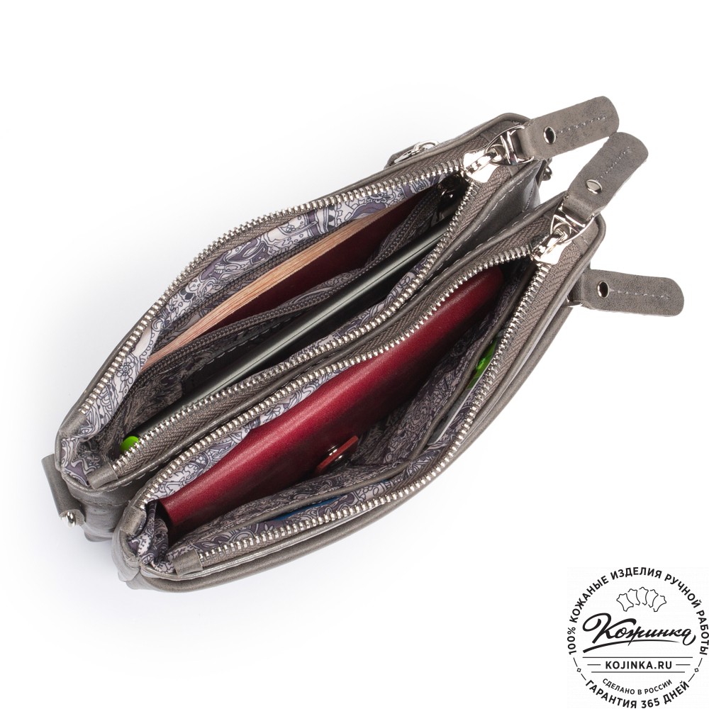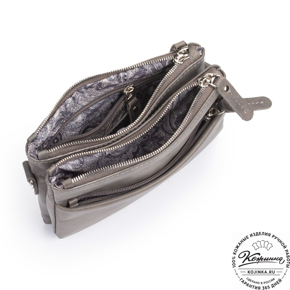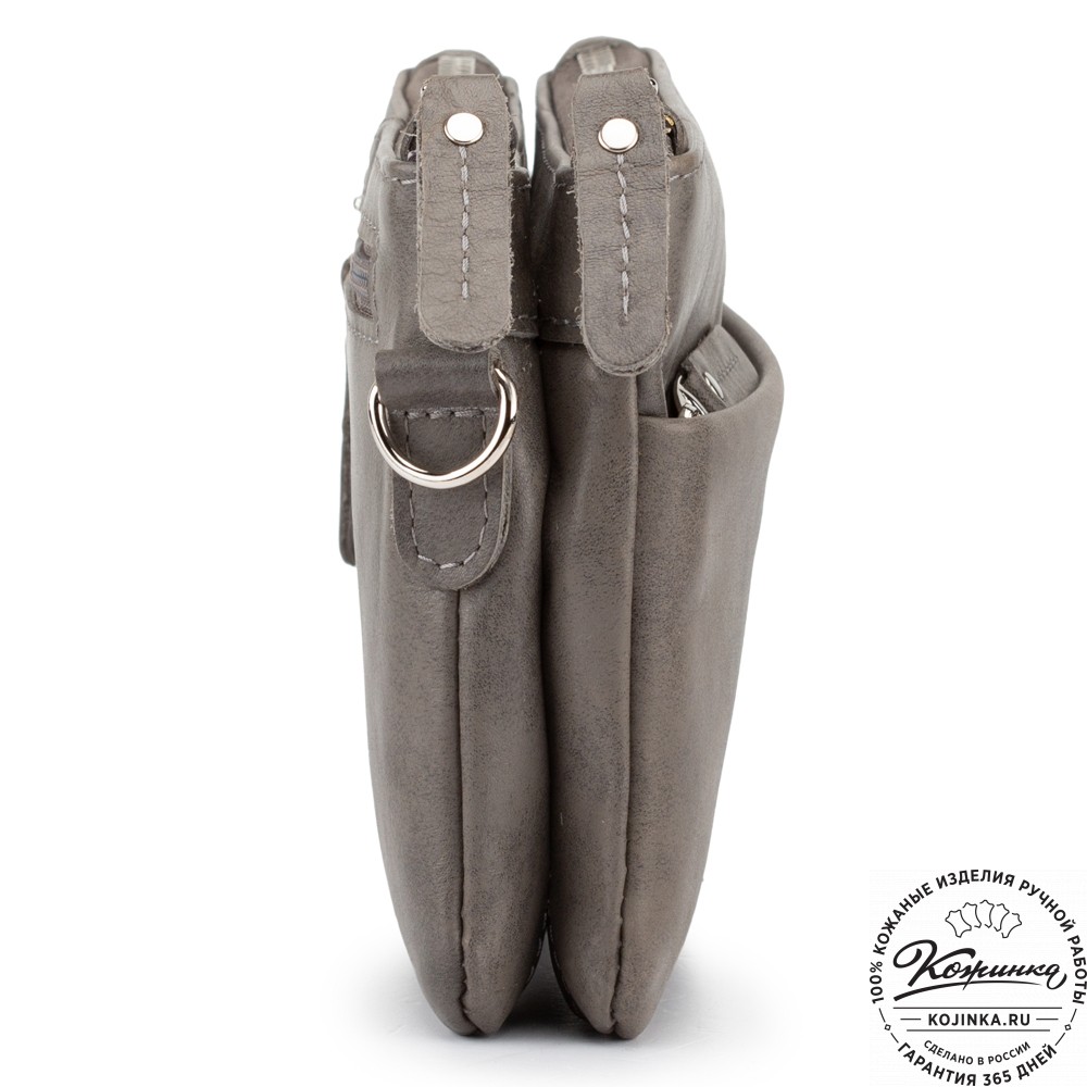 Женская кожаная сумка "Хельга" (серая гладкая кожа) – маленькая аккуратная сумочка с двумя отделениями.