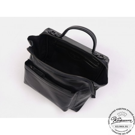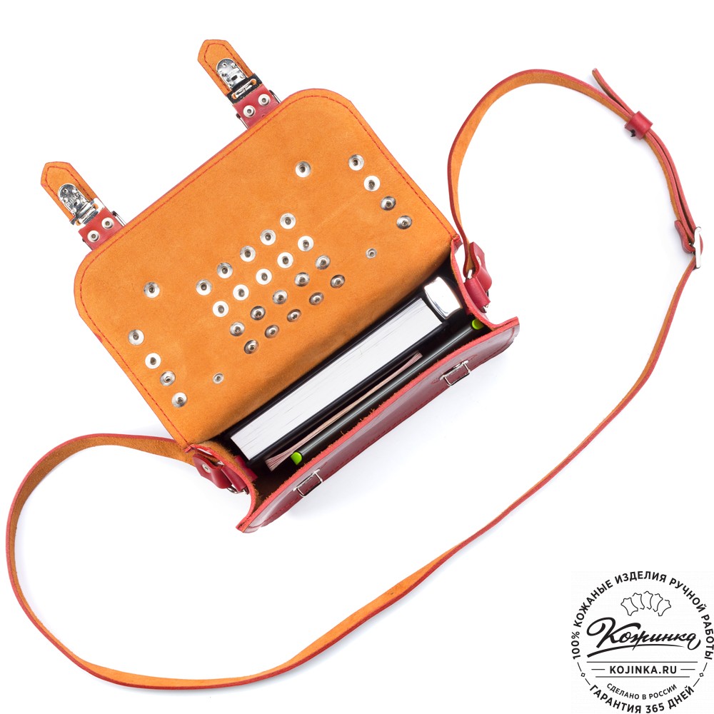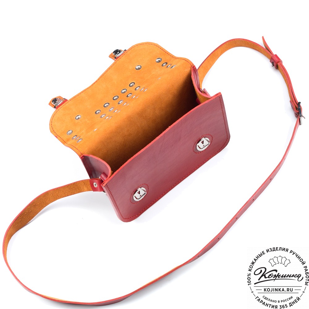 Сумочка изготовлена из прочной толстой кожи, благодаря чему держит форму.