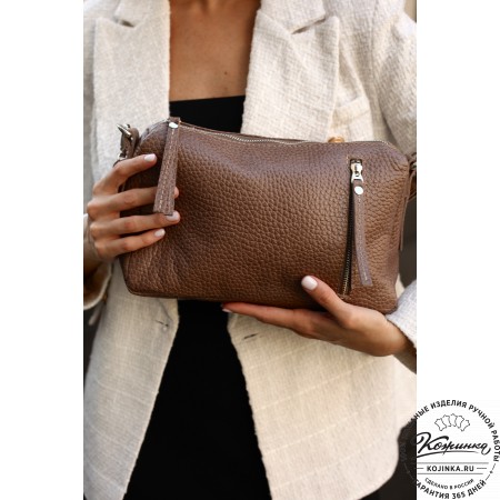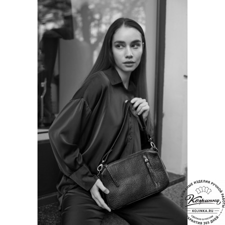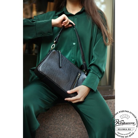 Сумочка изготовлена из прочной толстой кожи, благодаря чему держит форму.