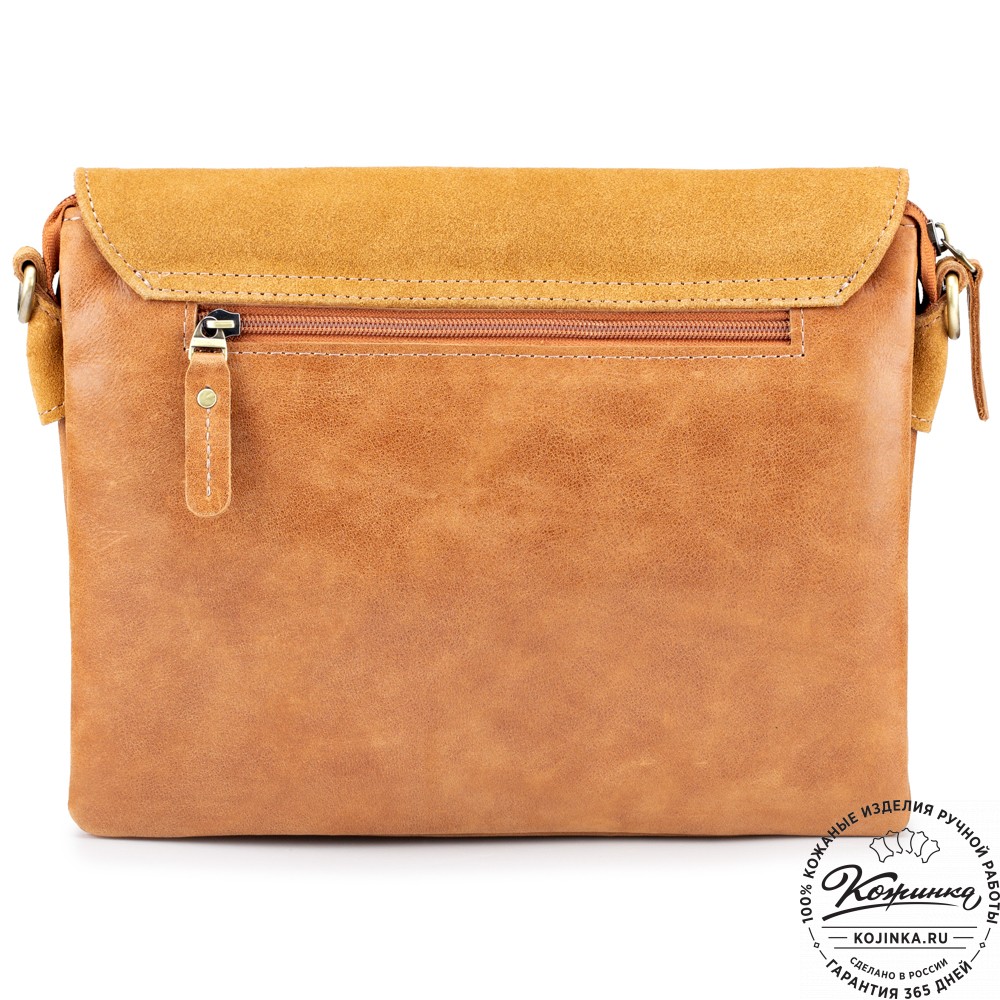 Сумка изготовлена из натуральной кожи и замши высокого качества. Подкладка внутри выполнена из прочной ткани с узором.