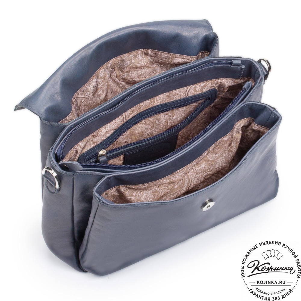 Сумка изготовлена из мягкой натуральной кожи высокого качества. Подкладка внутри выполнена из прочной ткани с узором.
