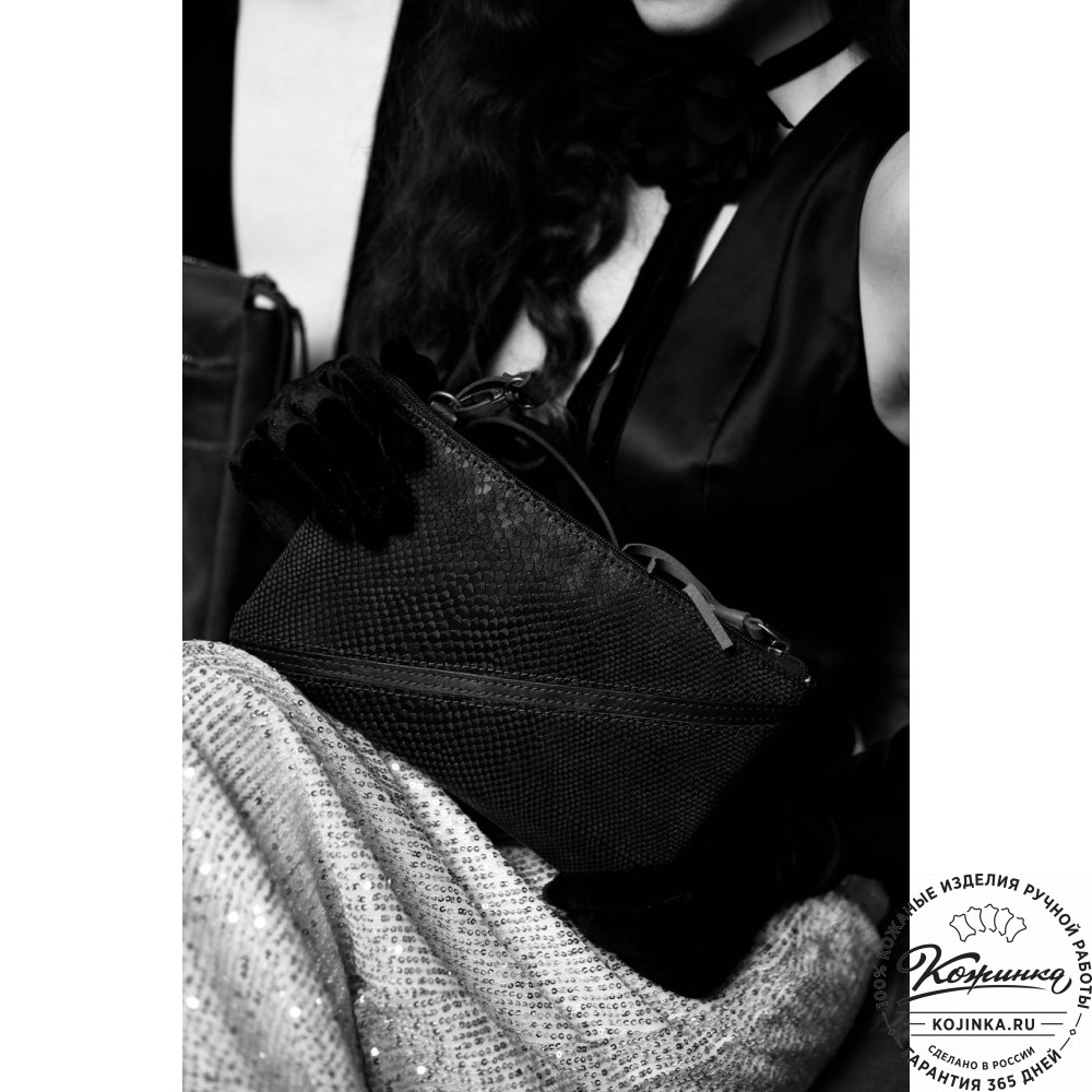 Ремешок в этой модели съемный, поэтому ее можно так же носить в руках, как клатч.