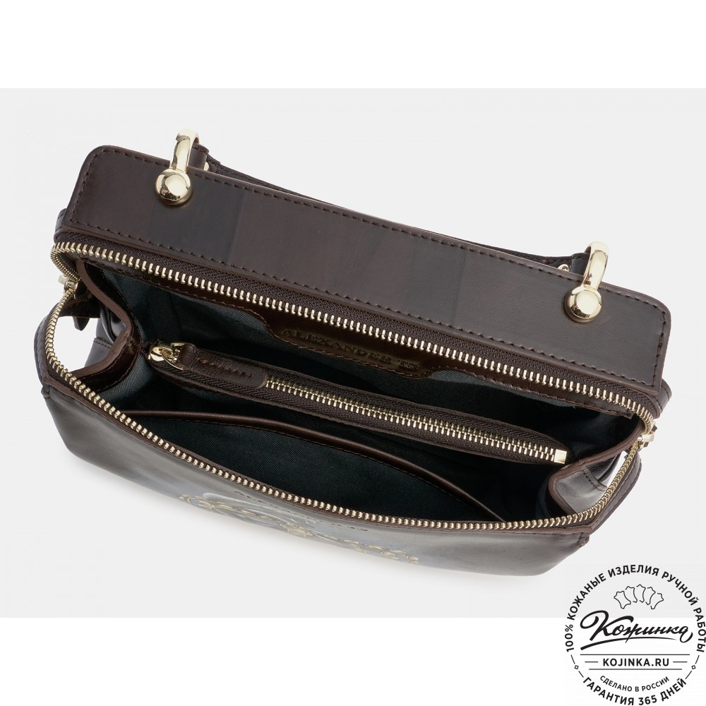 Сумку украшает красивый рисунок - это художественная роспись по коже. Каждый рисунок выполняется мастерами вручную, точных повторений не существует!