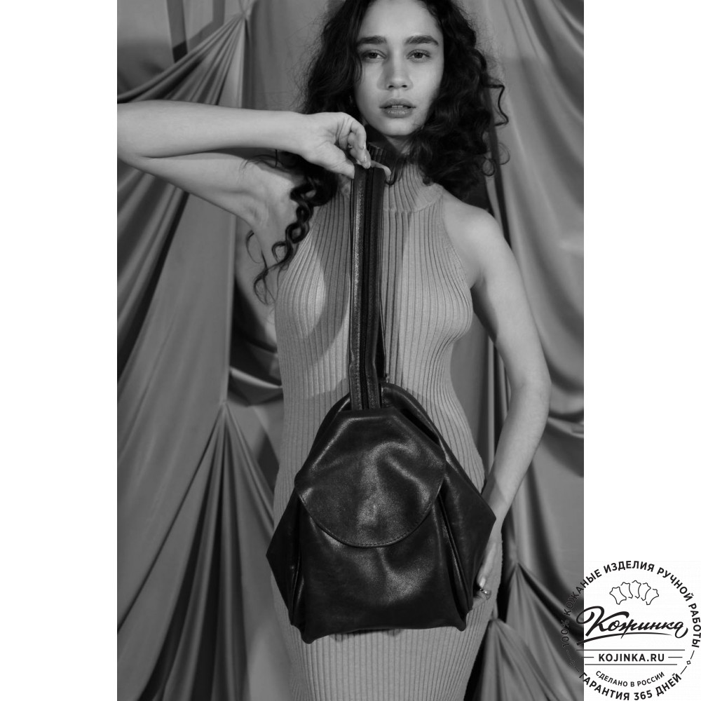 Кожаный рюкзак-сумка "Микки" (черный) - уникальная небольшая сумка, которая легко превращается в рюкзак. Это очень удобно!