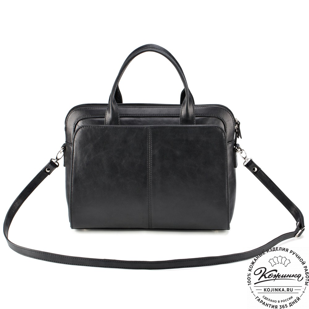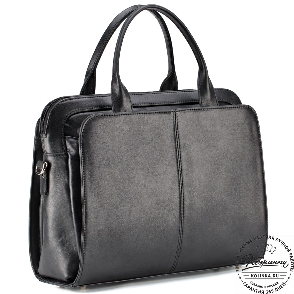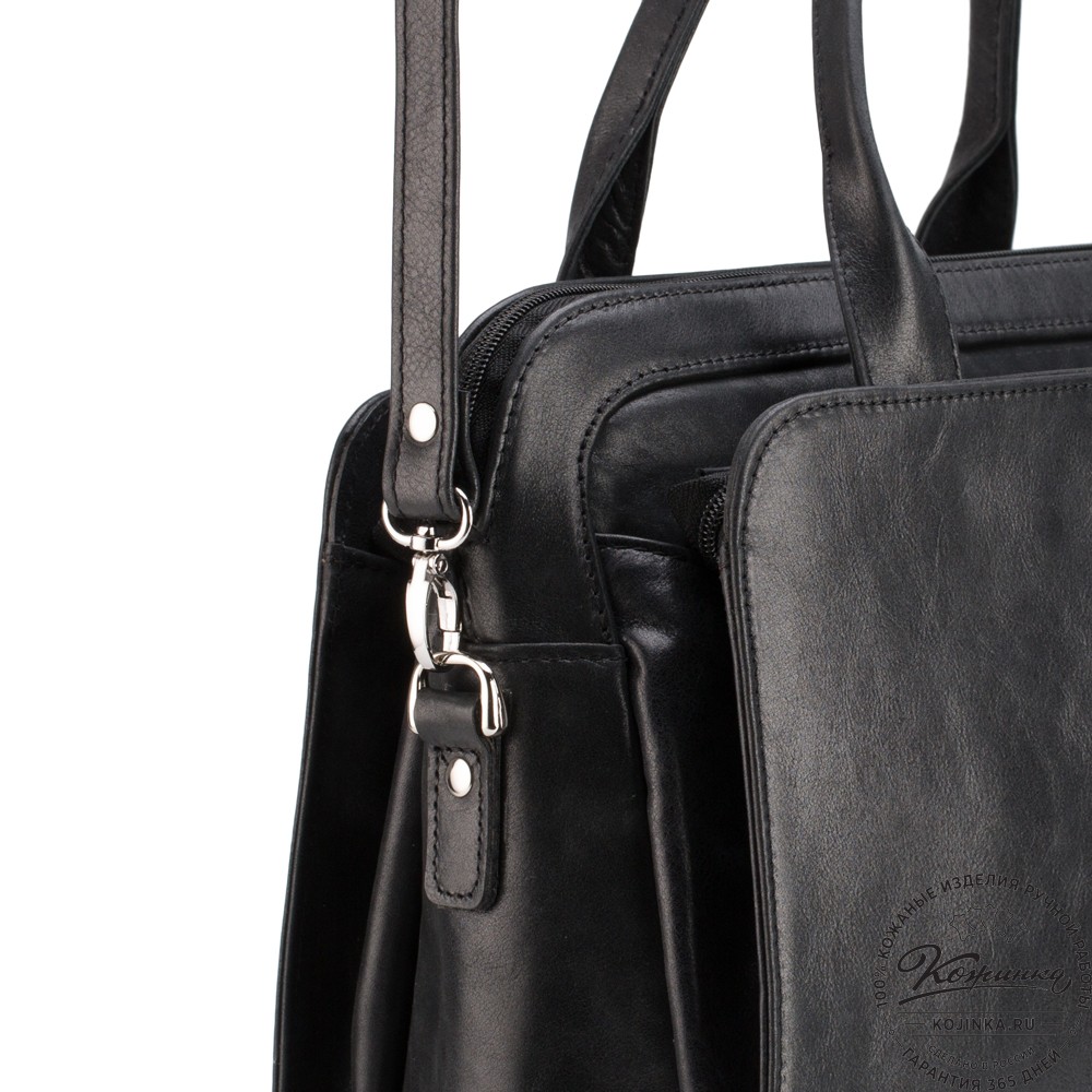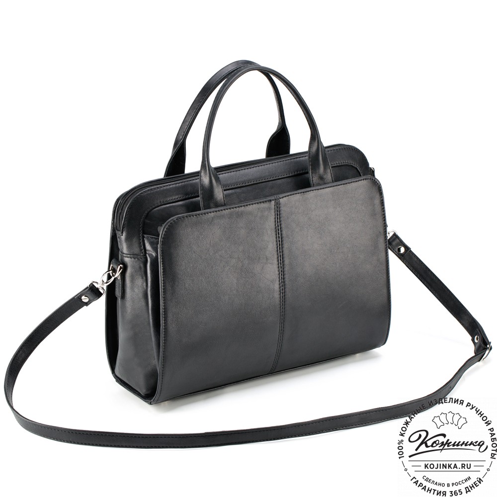 Женская кожаная сумка "Батерфляй" (чёрная) – вместительная сумка с тремя автономными отделениями, в которых можно удобно разместить все, что необходимо, включая документы формата А4 и ноутбук.