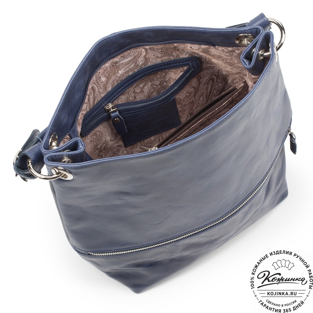Сумка изготовлена из мягкой натуральной кожи высокого качества. Подкладка внутри выполнена из прочной ткани с узором.