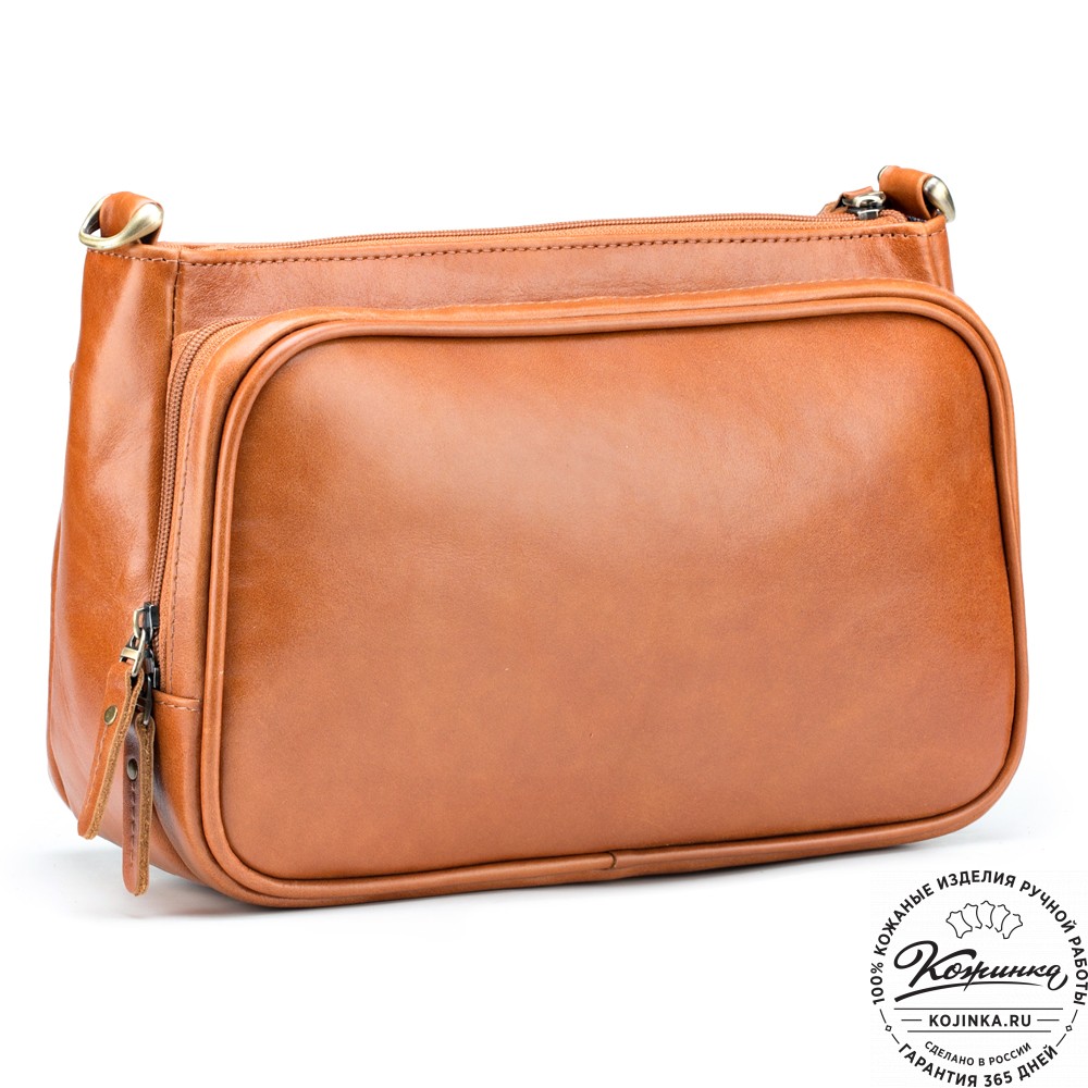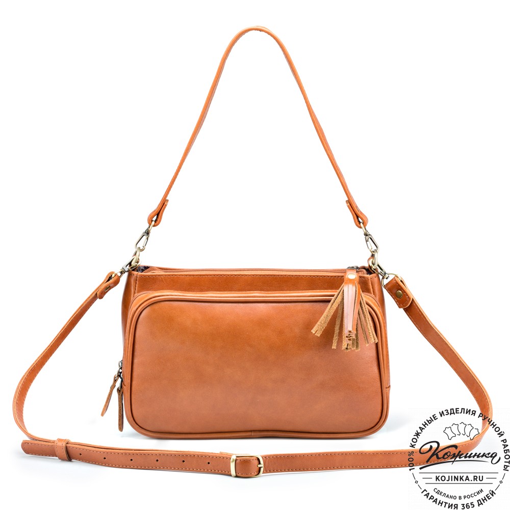 Женская кожаная сумка "Эмма" (рыжая) – удобная и практичная повседневная сумочка средних размеров.