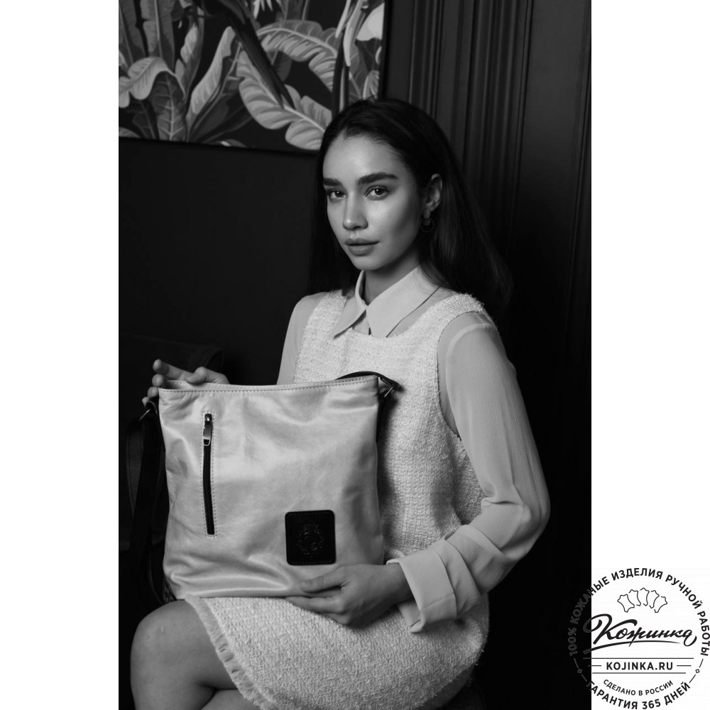 У сумки одно вместительное отделение, закрывается на молнию. Внутри карман на молнии для хранения ценных вещей и кармашек для телефона. Сумка выполнена на подкладке.
