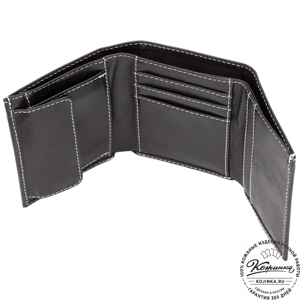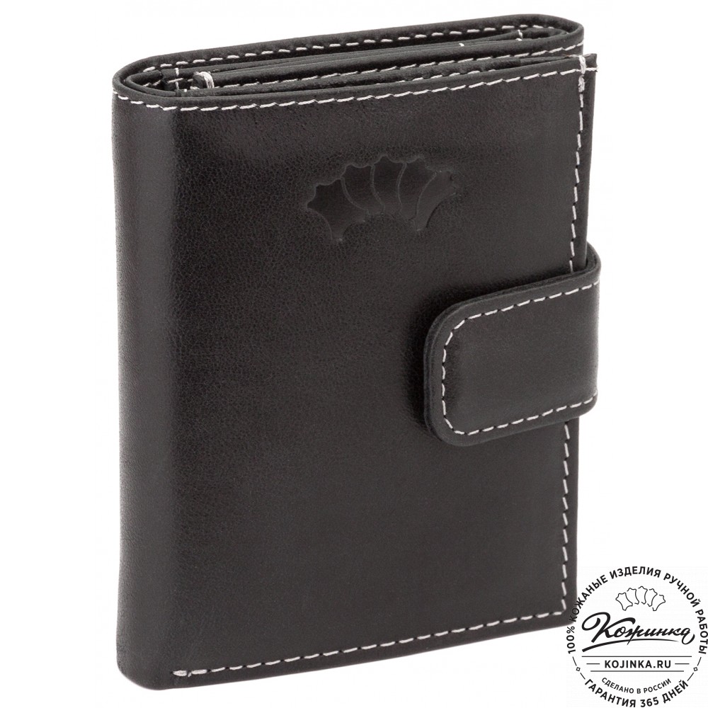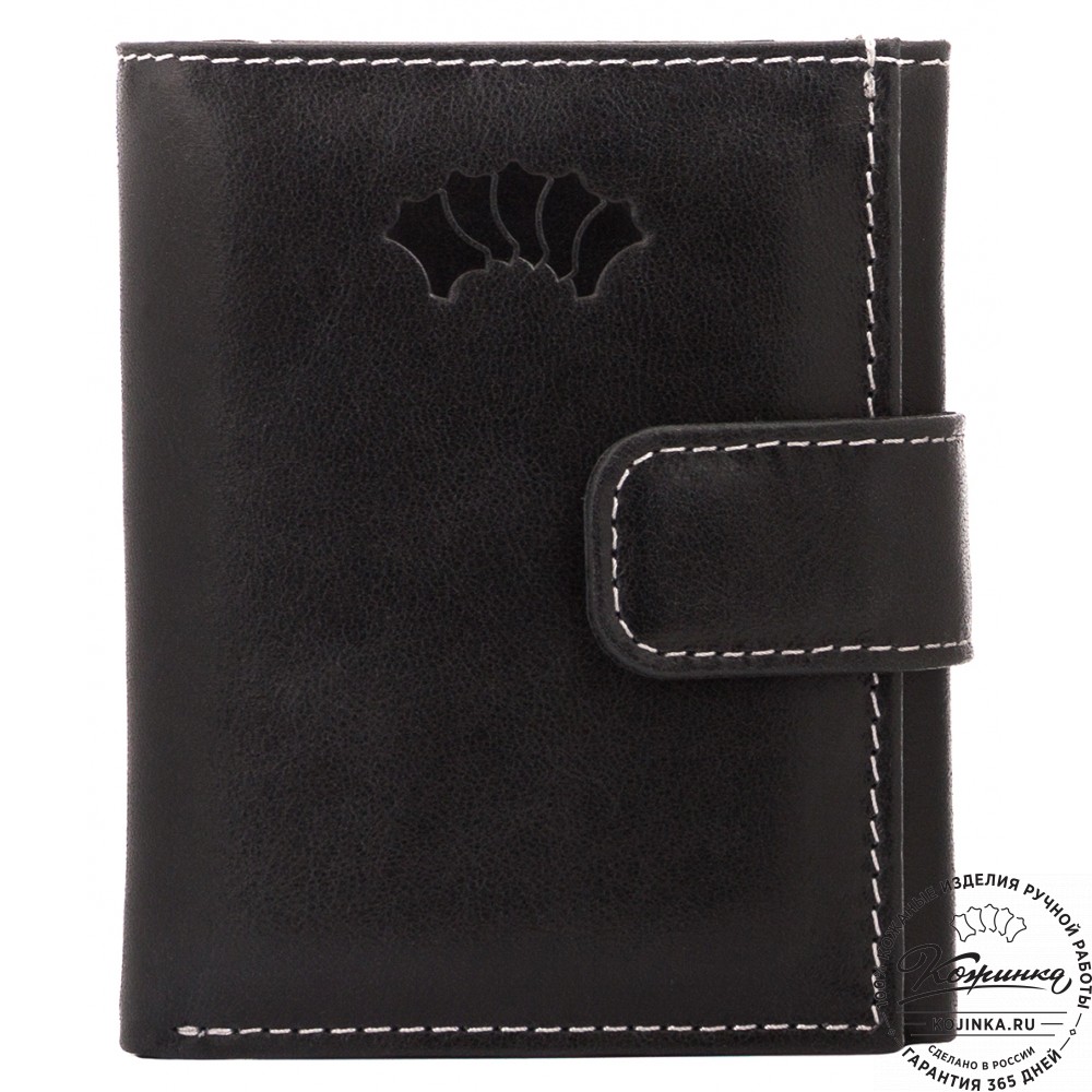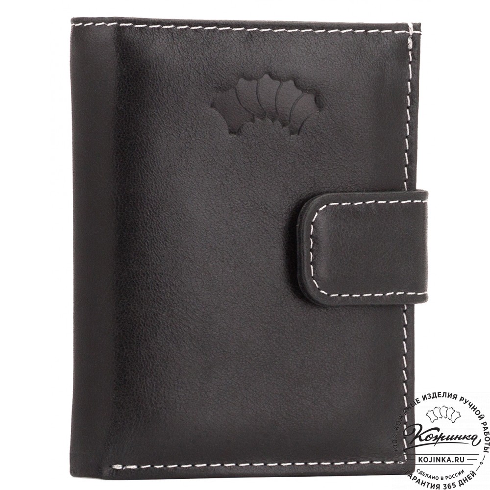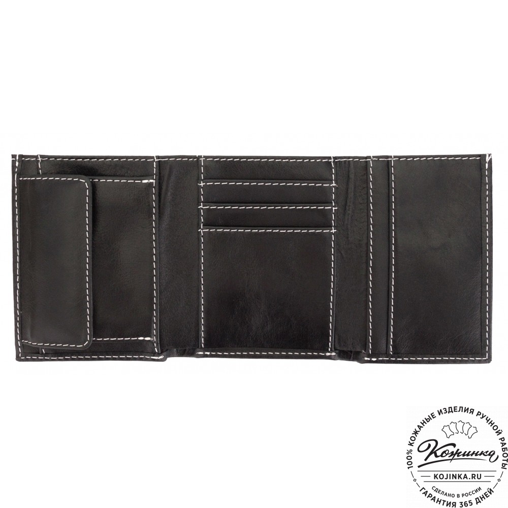 Кожаное портмоне "Германия" (чёрное) - отличный вариант небольшого бумажника с отделениями для карт, купюр и мелочи.