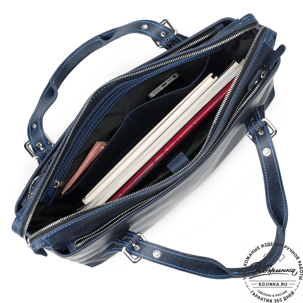 Такая сумка вместит в себя ноутбук 15", и для него есть специально отведенное отделение, а также большое количество бумаг и документов.