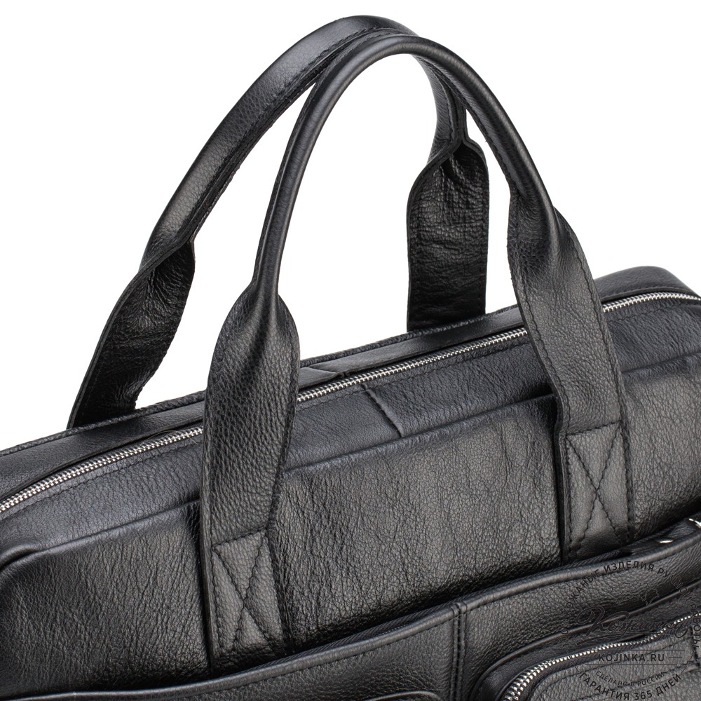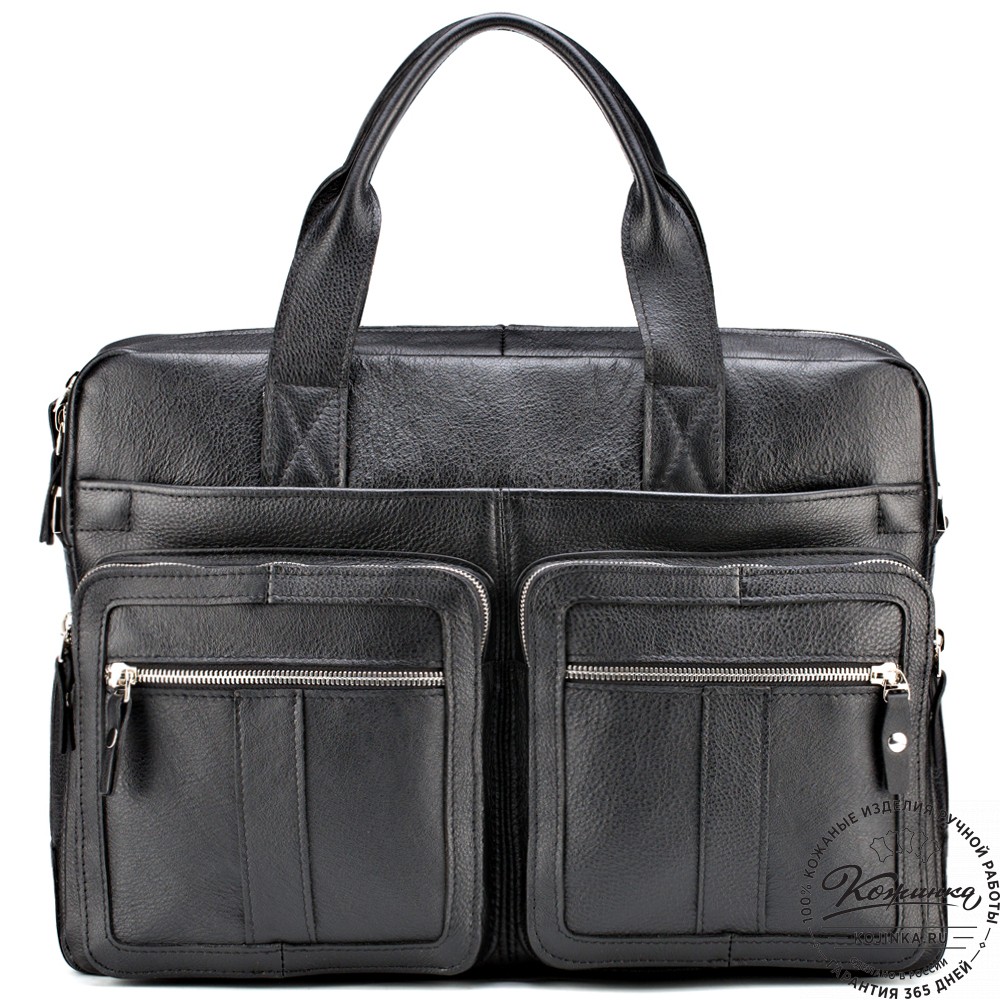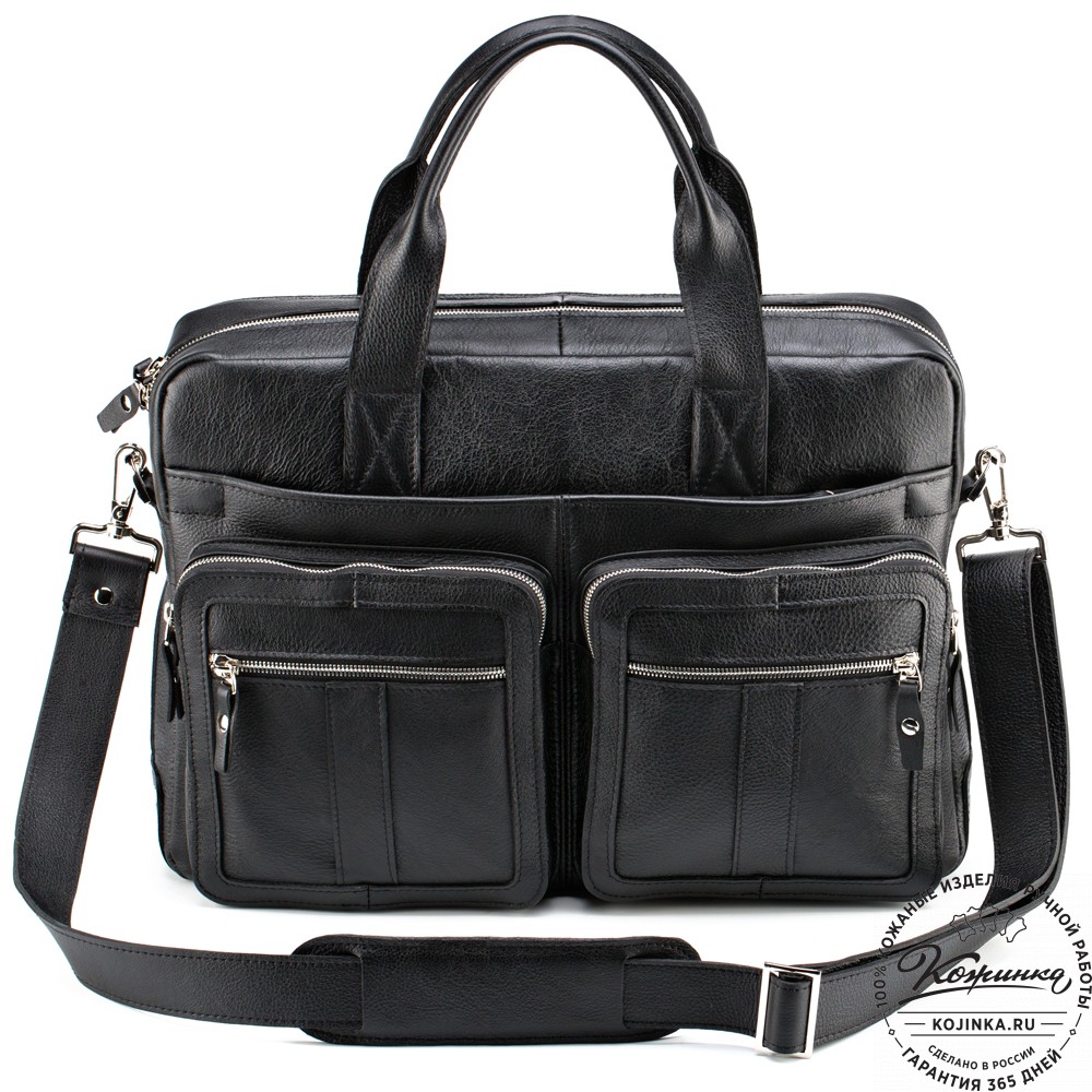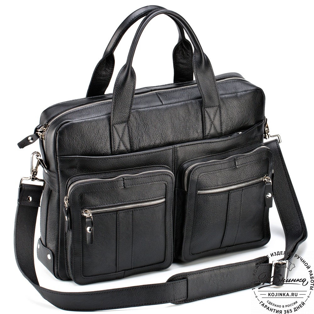 Кожаная деловая сумка "Гильермо" (чёрная) - практичная мужская сумка на каждый день из прочной натуральной кожи.