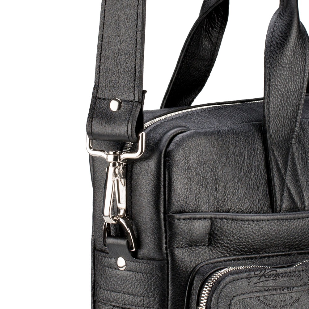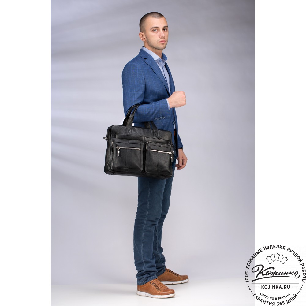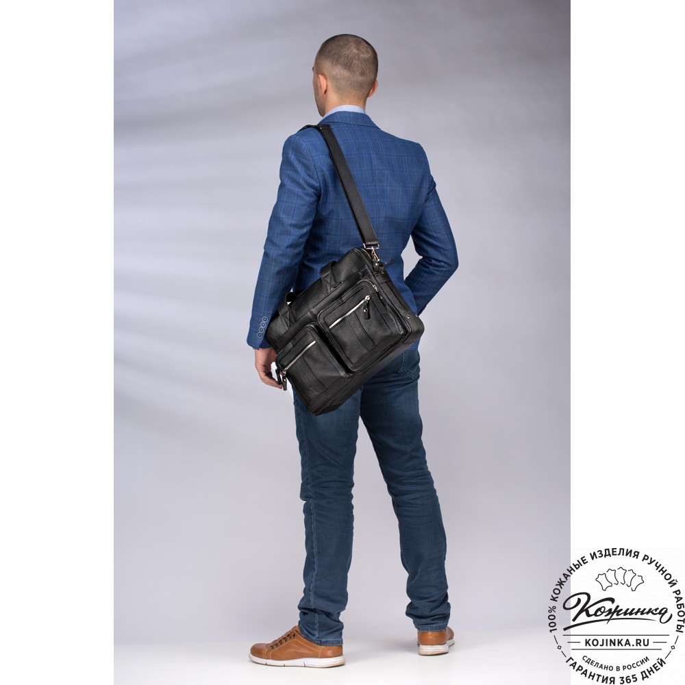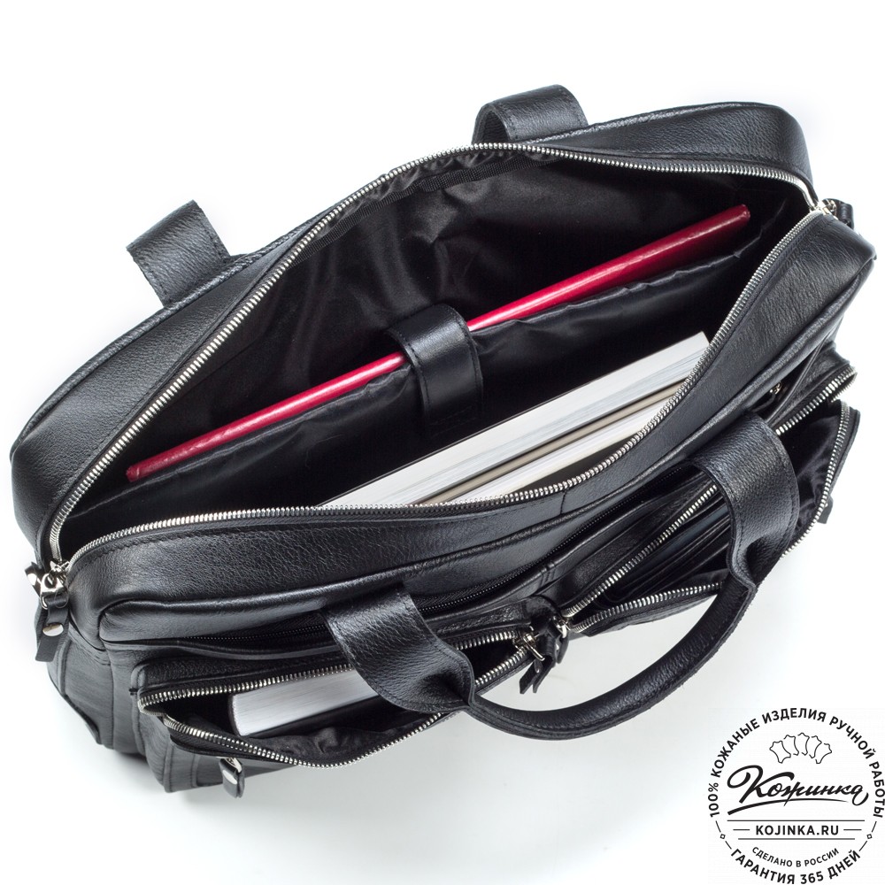 Кожаная деловая сумка "Гильермо" (чёрная) - практичная мужская сумка на каждый день из прочной натуральной кожи.