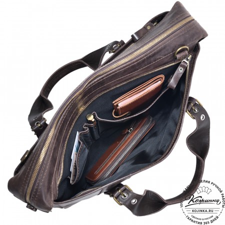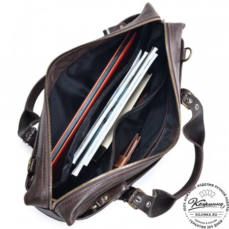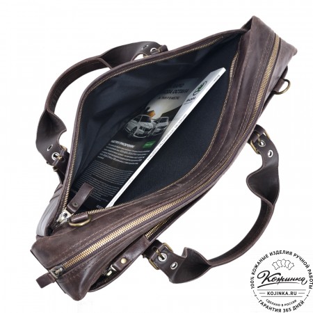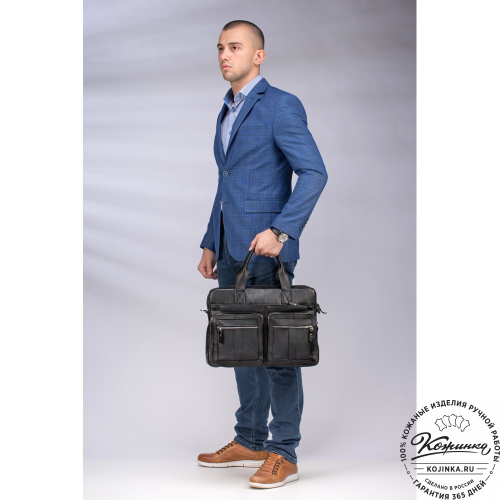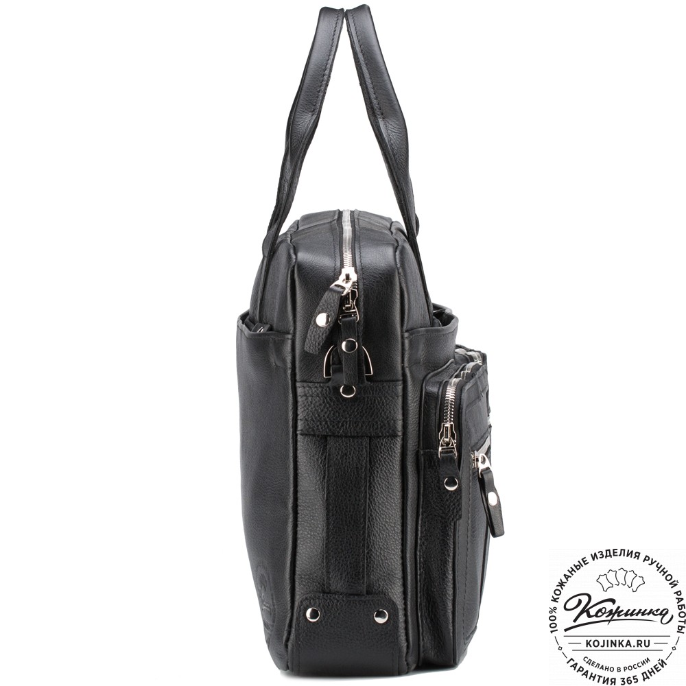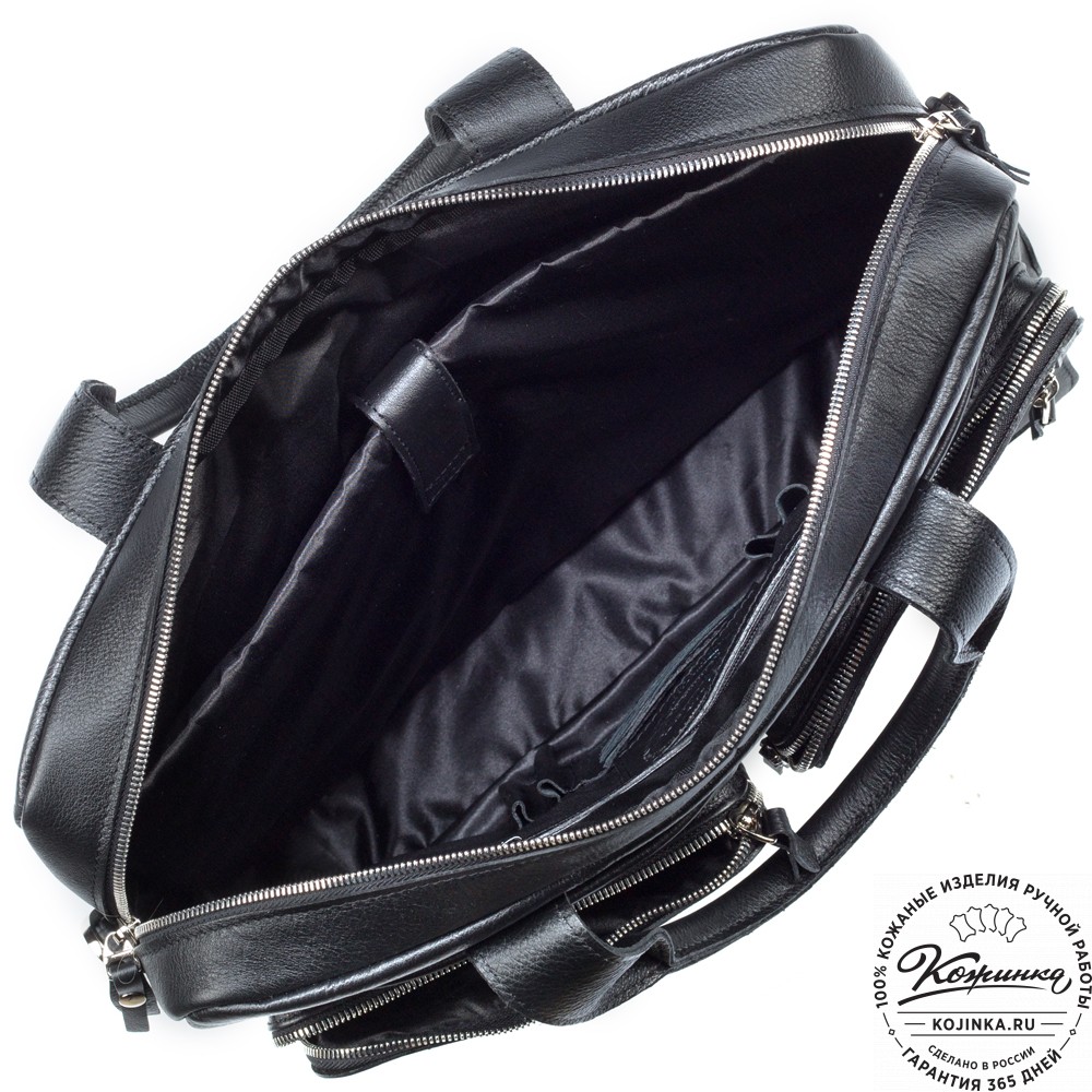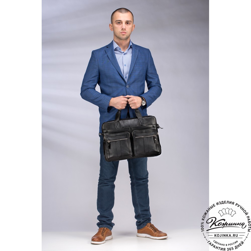 Кожаная деловая сумка "Гильермо" (чёрная) - практичная мужская сумка на каждый день из прочной натуральной кожи.