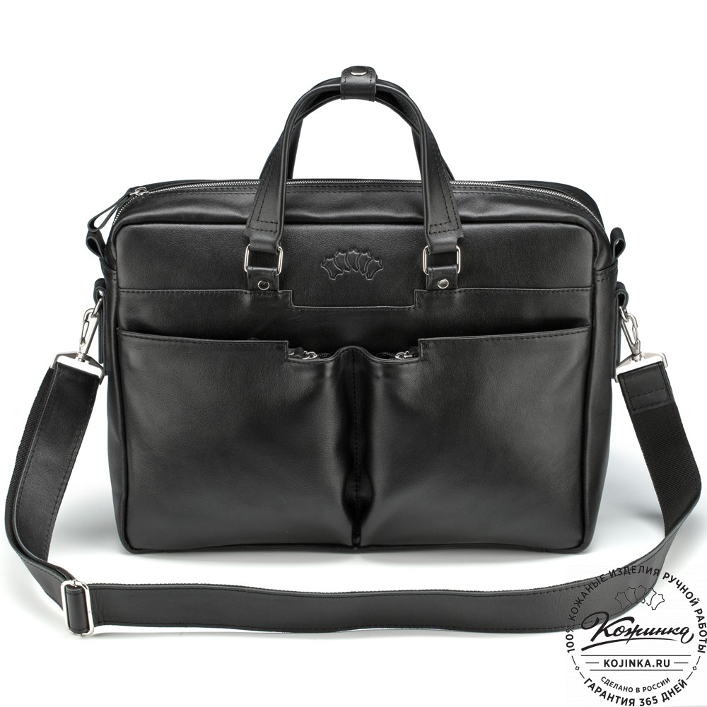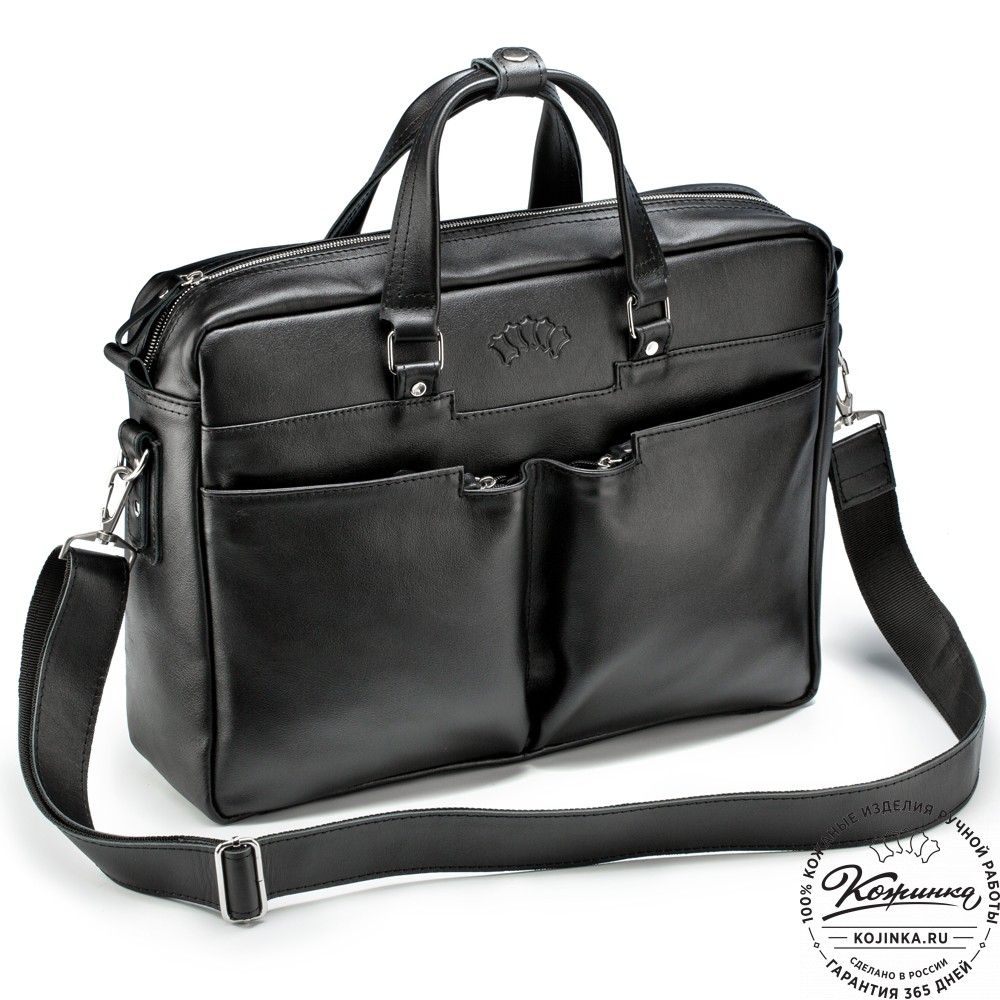 Кожаная деловая сумка "Хантер" (чёрная) – вместительная деловая сумка из прочной натуральной кожи.