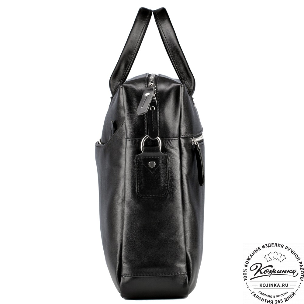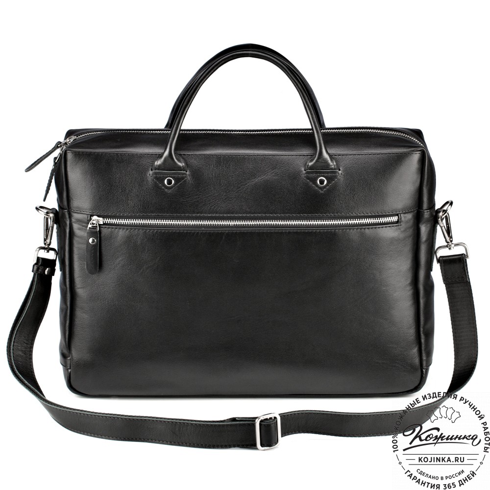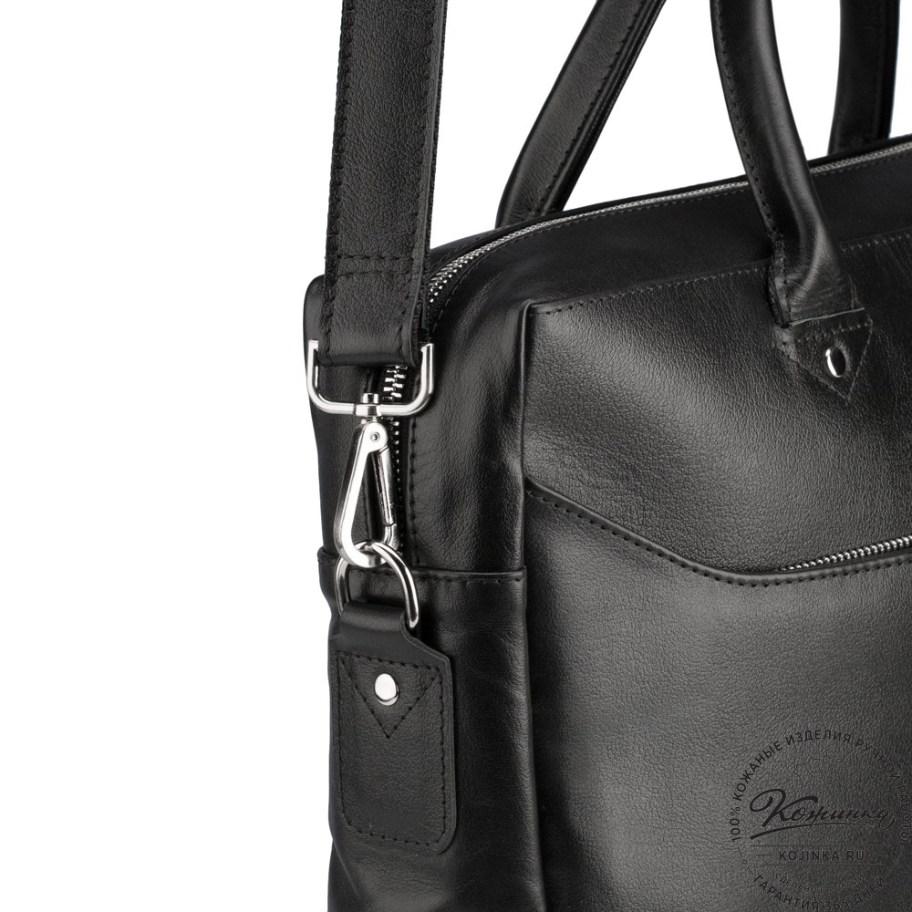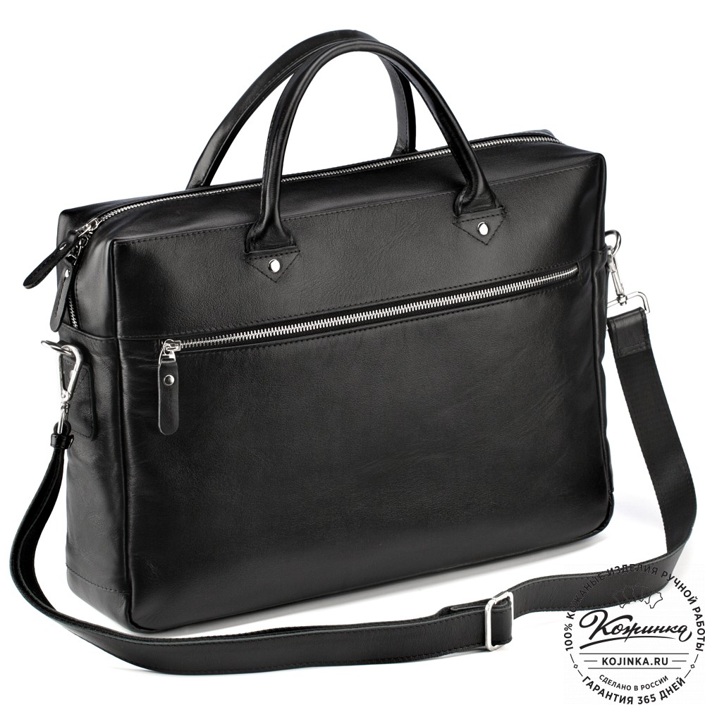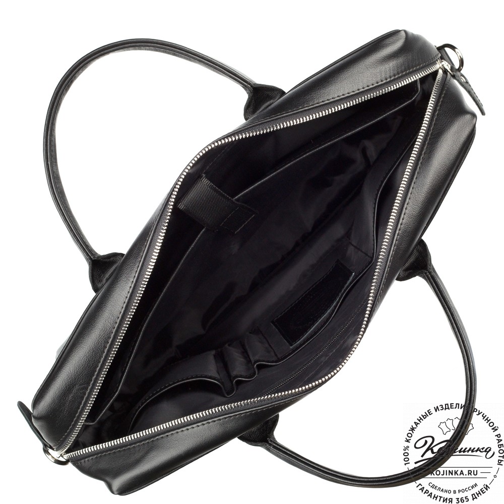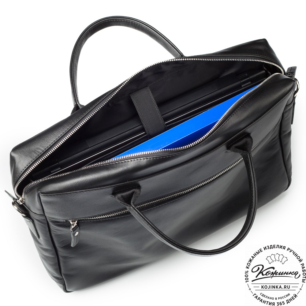 Кожаная деловая сумка "Спайк" (чёрная) – удобная деловая сумка для ноутбука и документов. Строгая и лаконичная модель как снаружи, так и внутри - ничего лишнего, все по делу!