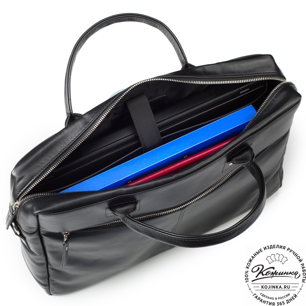 Кожаная деловая сумка "Спенсер" (чёрная) – стильная деловая сумка из натуральной кожи. Удобная и вместительная модель, отлично подходит для ноутбука и документов.