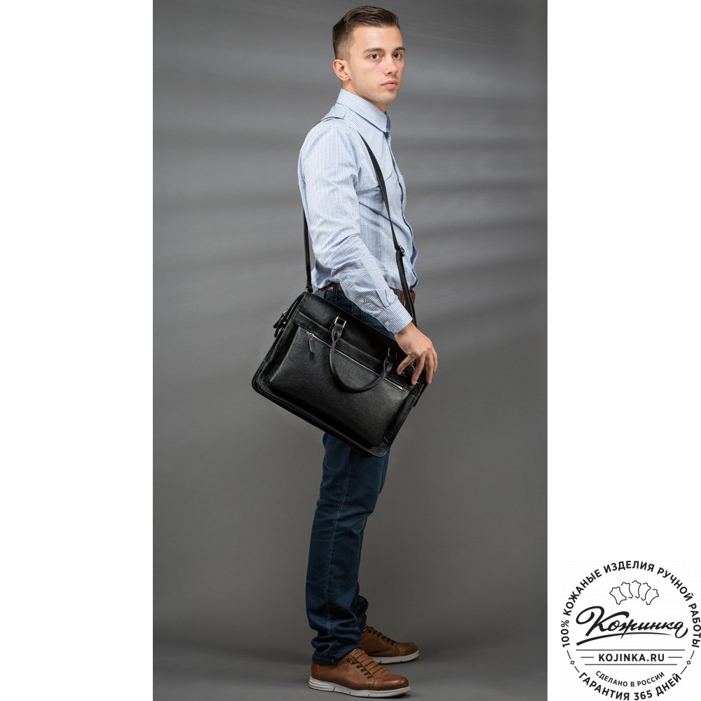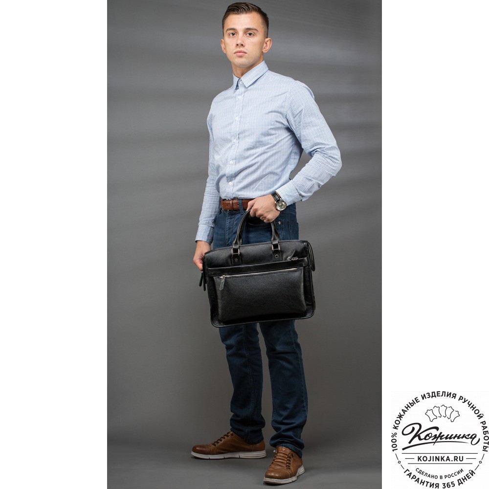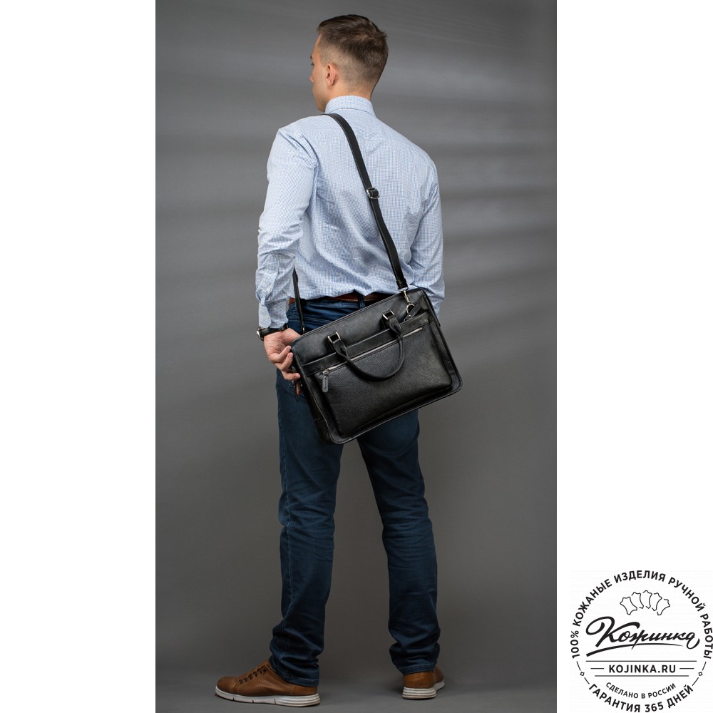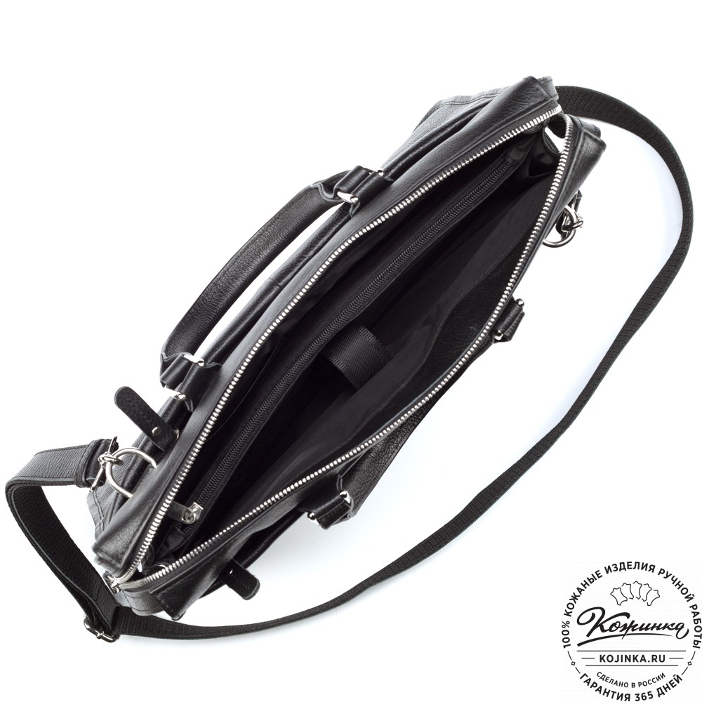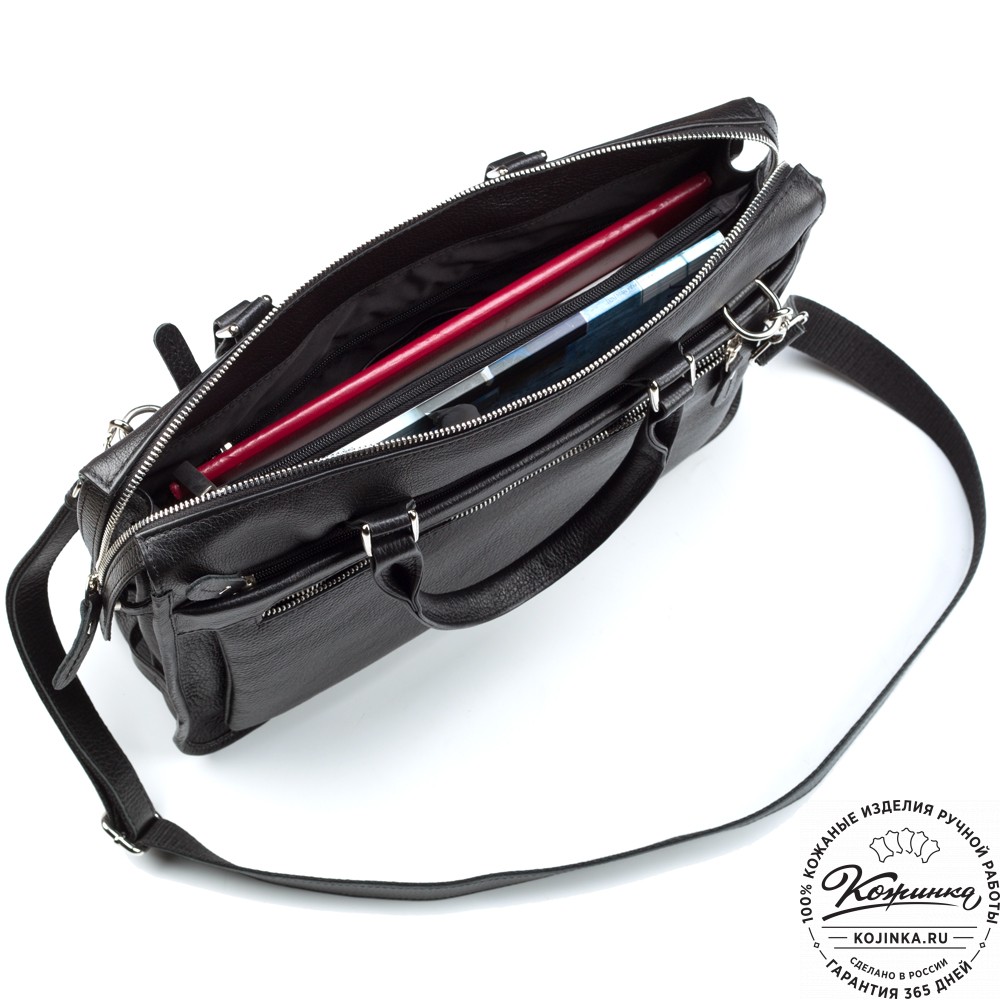 Кожаная деловая сумка "Вильямс" (чёрная) – классическая деловая сумка для документов, практичная и вместительная модель со множеством удобных карманов и отделений.