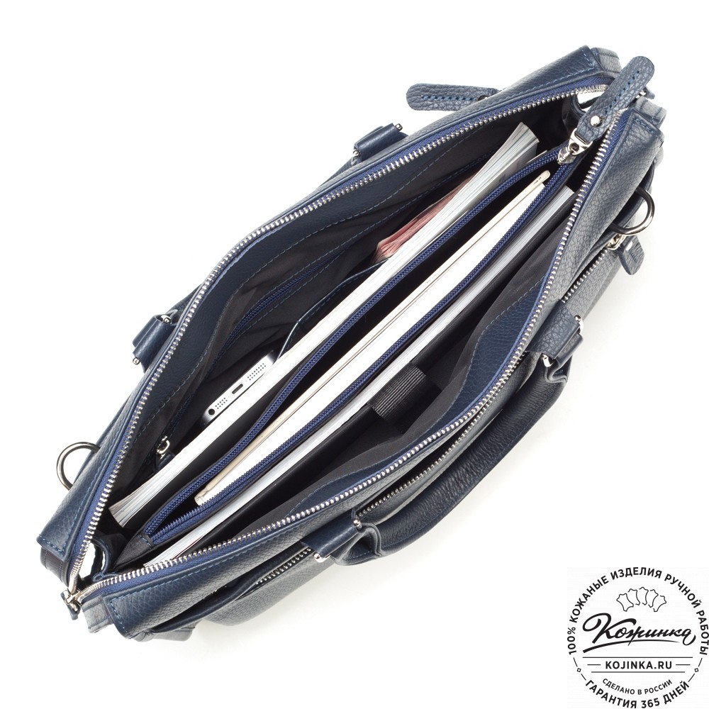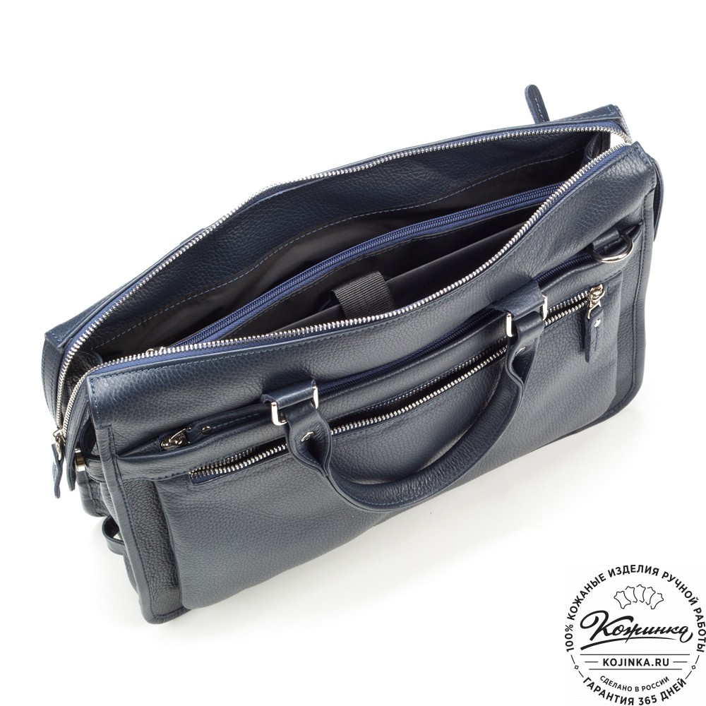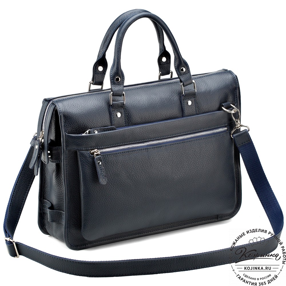 Кожаная деловая сумка "Вильямс" (синяя) – классическая деловая сумка для документов, практичная и вместительная модель со множеством удобных карманов и отделений.