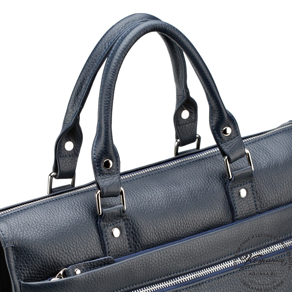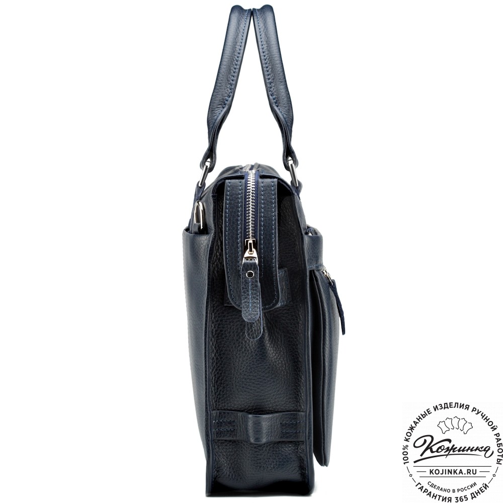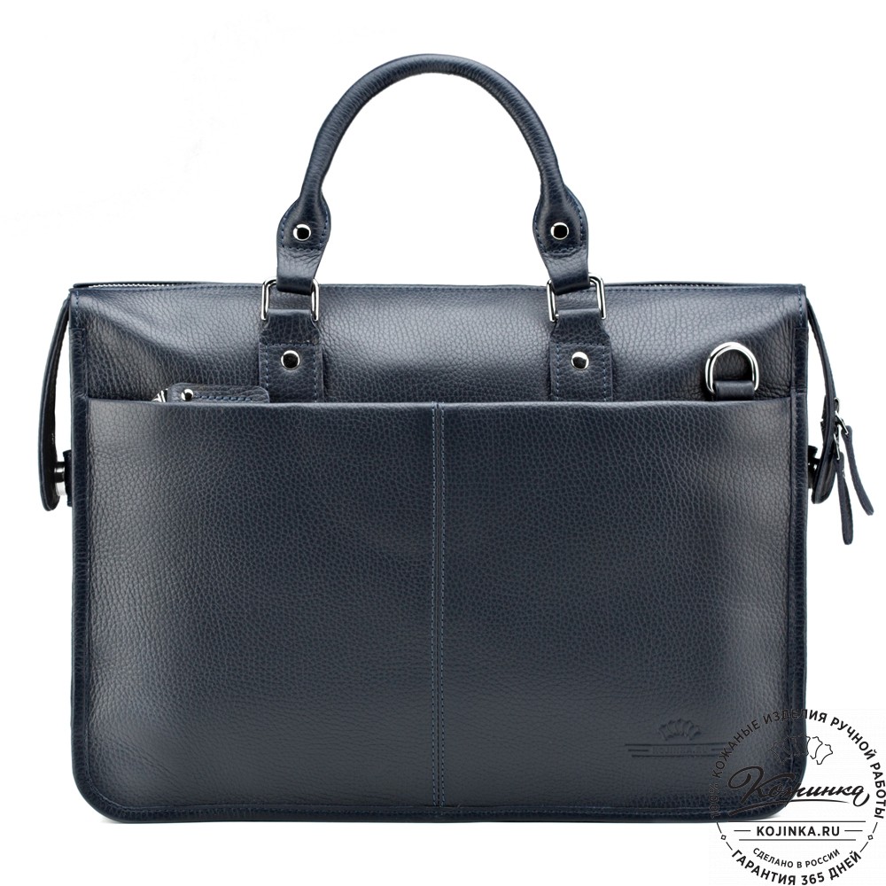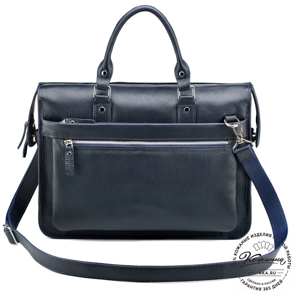 Кожаная деловая сумка "Вильямс" (синяя) – классическая деловая сумка для документов, практичная и вместительная модель со множеством удобных карманов и отделений.