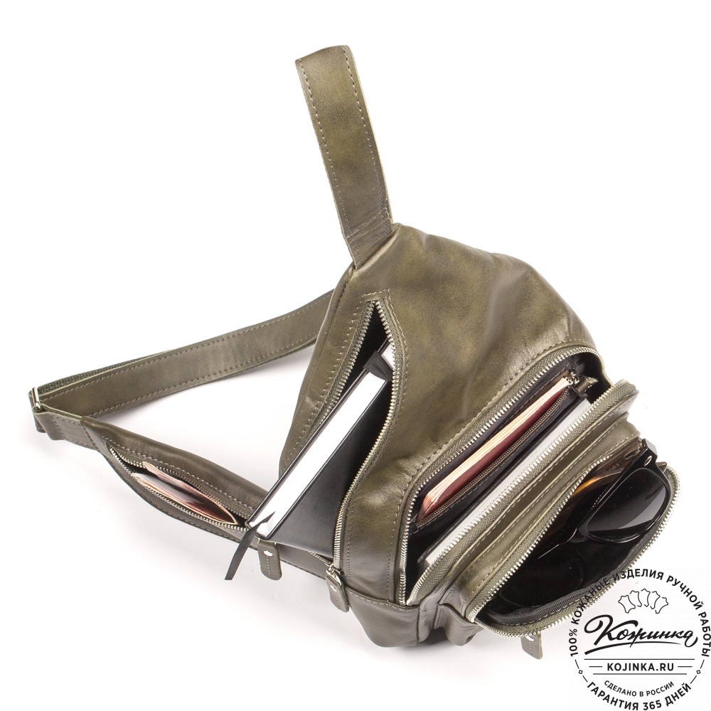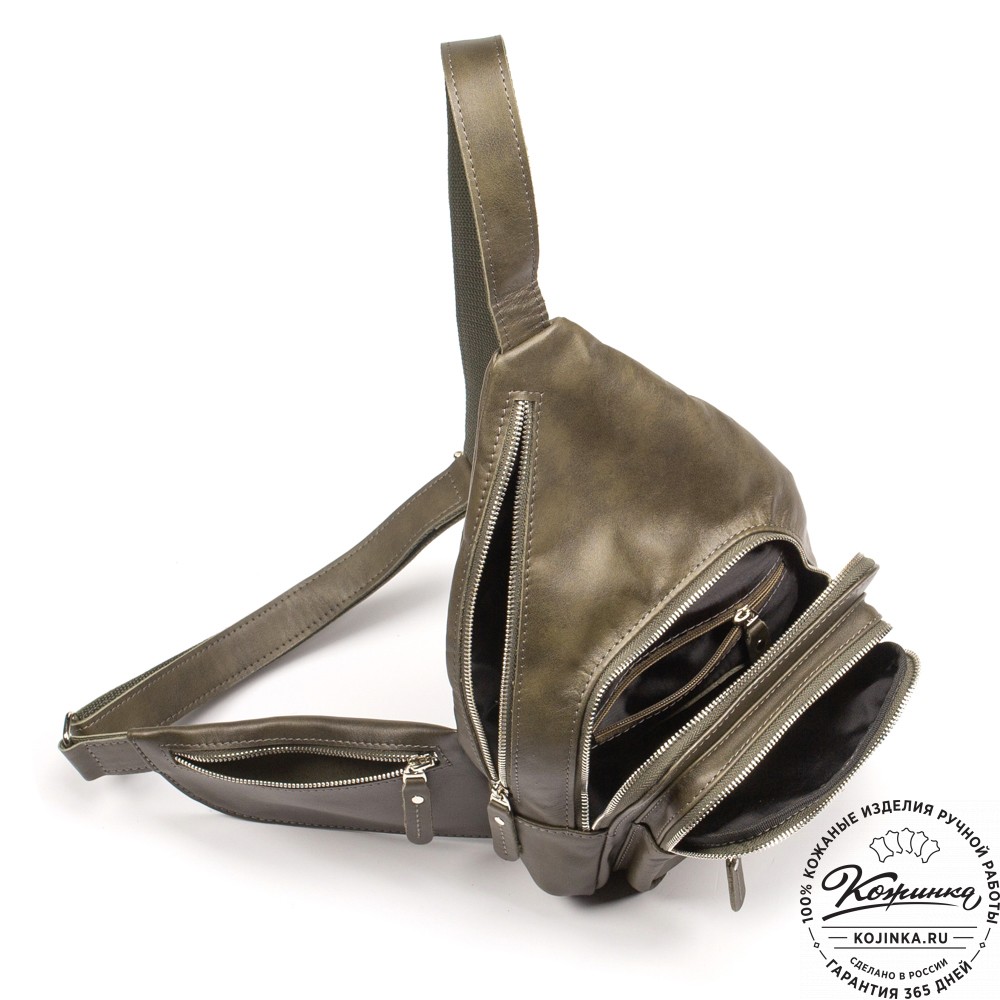 Такую диагональную сумку на одну лямку можно носить как на спине, так и на груди.