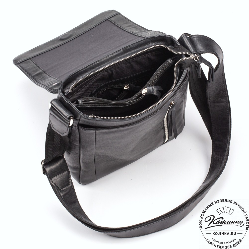 Сумка закрывается на молнию и клапан с магнитными кнопками, в ней 3 основных отделения, отделение по середине имеет карман на молнии.