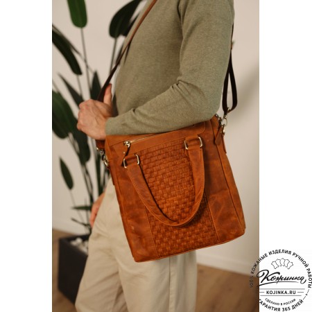 Кожаная сумка "Рига" (коричневая) - стильный повседневный аксессуар для делового человека!